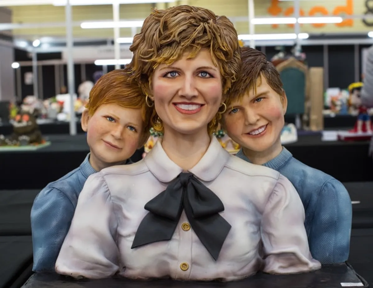 قامت الخبازة البريطانية «لارا ماسون» بصنع كعكة عملاقة للأميرة ديانا ووليام وهاري وهي تبتسم معهم.