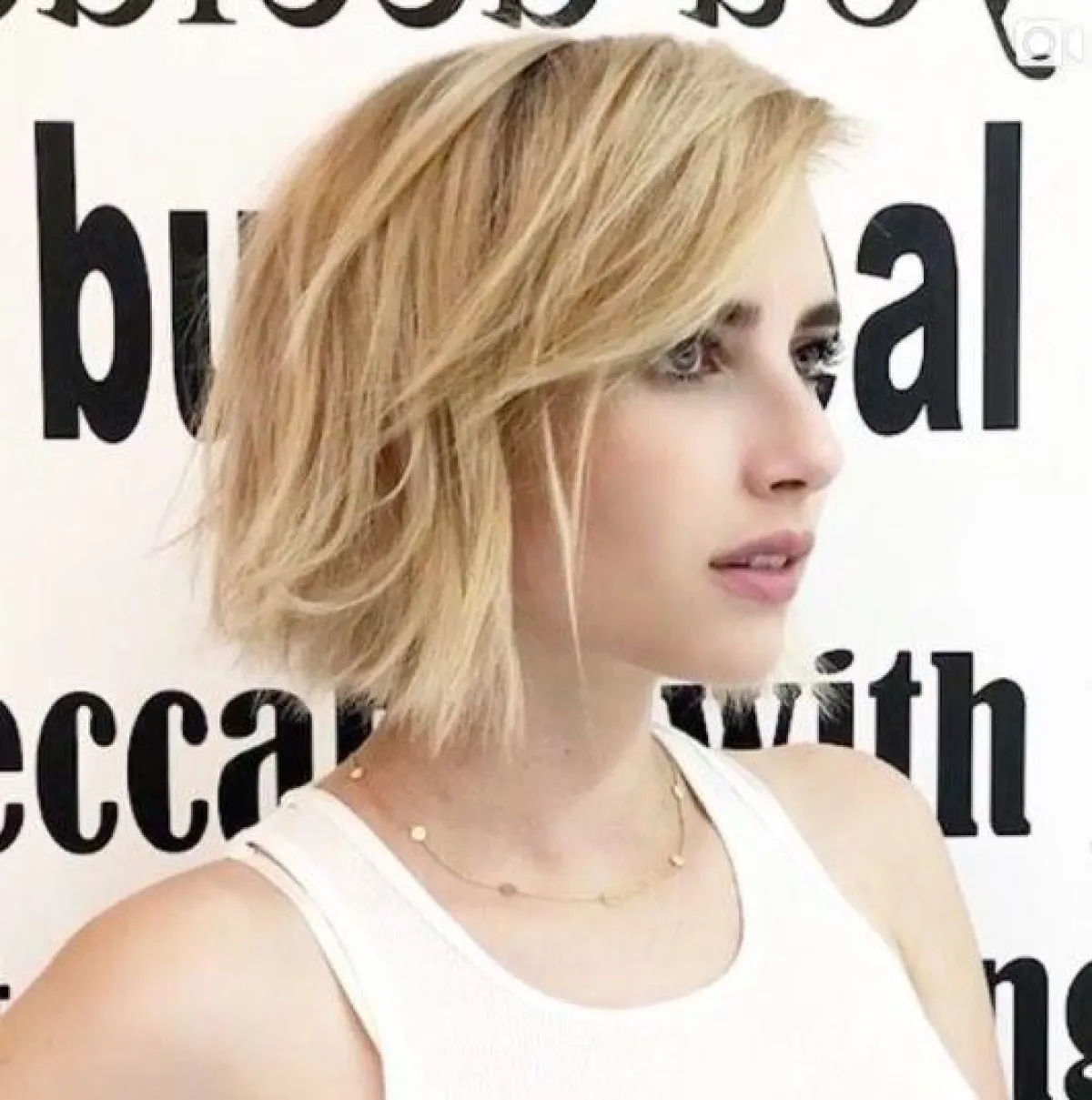 ظهرت بها هذا العام، عارضة الأزياء العالمية Bella Hadid بيلا حديد، لم تكن فيها أطراف الشعر متساوية الطول بشكل واضح، إذ لاحظنا بعض التدرجات في الشعر، وهي الأفضل إن كان الشعر خفيفًا.