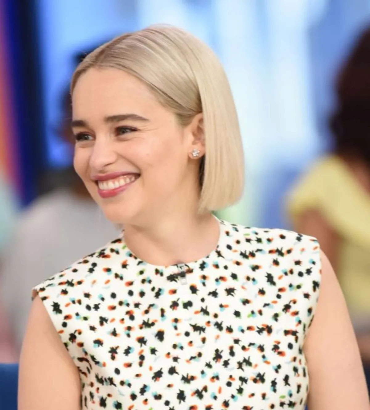 بينما اعتمدتها النجمة Emilia Clarke إيميليا كلارك بـ شعر أشقر بلاتينيوم، وتسريحة مهندمة، بخاصة مع القصّة المتساوية في الطول من الأطراف، بدت فيها جميلة، بالرغم من أنّ وجه إيميليا ليس طويلًا للغاية.