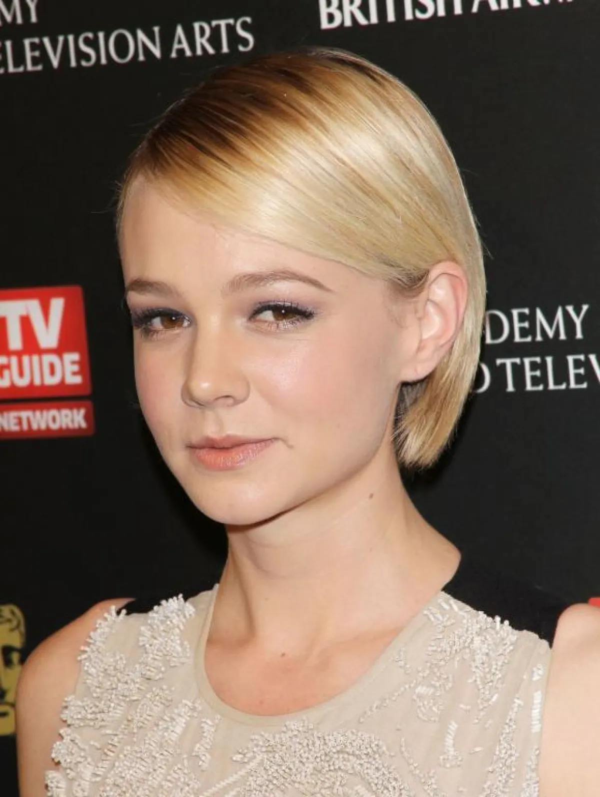 ظهرت النجمة Carey Mulligan كاري ميلوجن بالشعر القصير الأملس بتسريحة البوب، واختارت الغرة على جنب، لتسريحة مستوحاة بالكامل من الطراز الفرنسي.