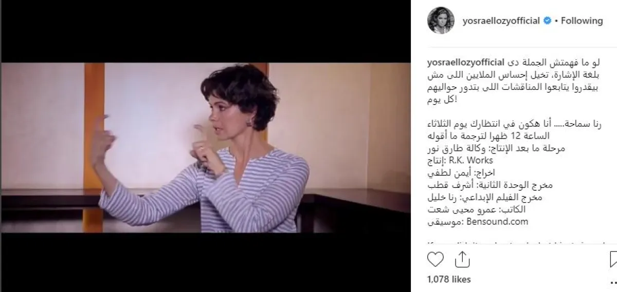 يسرا اللوزي على الفيديو قائلة:" لو ما فهمتش الجملة دى بلغة الإشارة، تخيل إحساس الملايين اللى مش بيقدروا يتابعوا المناقشات اللى بتدور حواليهم كل يوم"!