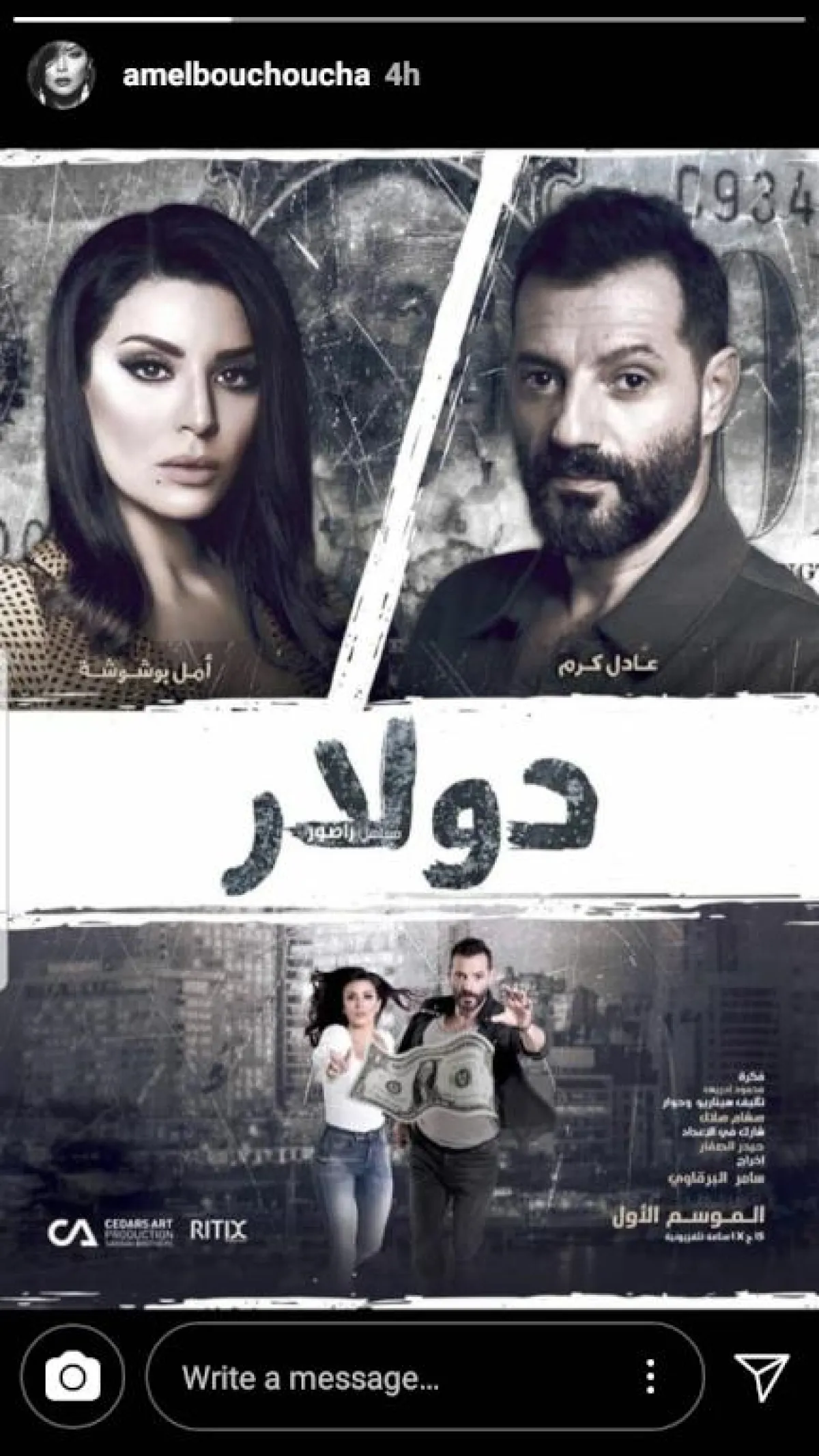 نشرت الفنانة أمل بشوشة عبر صفحتها على "إنستا ستوري" البوستر الرسمي الخاص بملسل "دولار" .