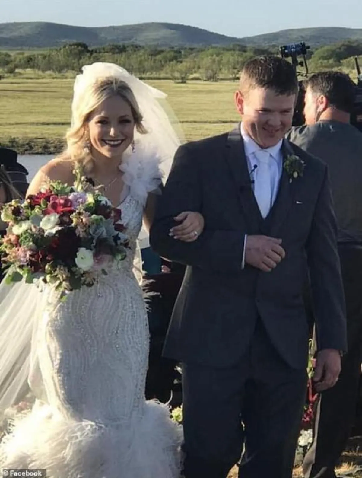 انتهت حياة عروسين في تكساس سريعاً عندما تحطمت المروحية الهليكوبتر التي حلقت بهما بعد حفل زفافهما الخيالي بجانب التل.