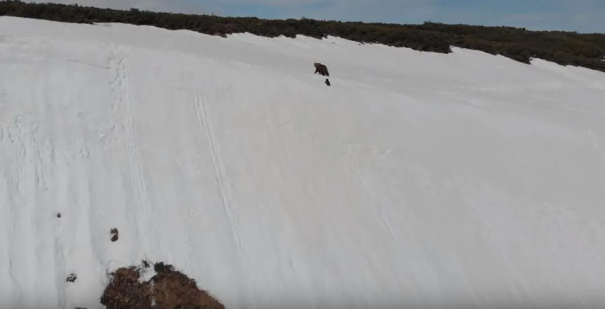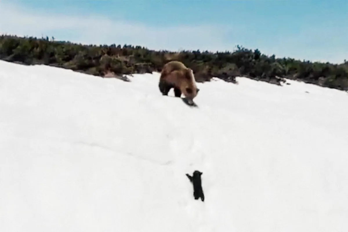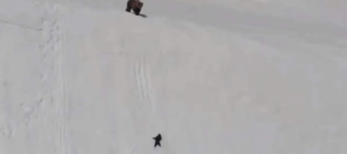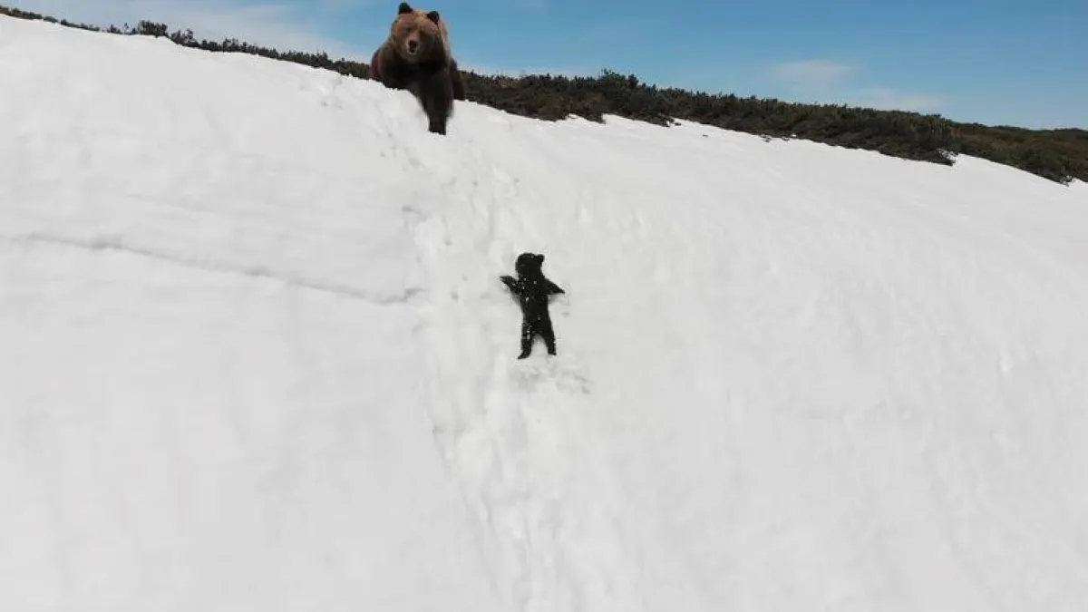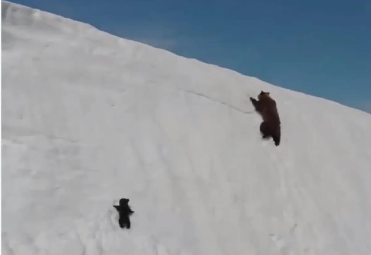 اجتاح مقطع فيديو مصوَّر لـ«دب صغير» يحاول الوصول إلى أمه عبر تسلق منحدر ثلجي شديد الانحدار، مختلف شبكات التواصل الاجتماعي حول العالم، حيث أظهر مقطع الفيديو الذي التقطته طائرة «درون»، في إحدى غابات روسيا، أنثى الدب مع صغيرها وهما يحاولان تسلق المنحدر القاسي الذي كان يغطيه الثلج بأكمله، وذلك بحسب ما نشره موقع «عربي بوست».