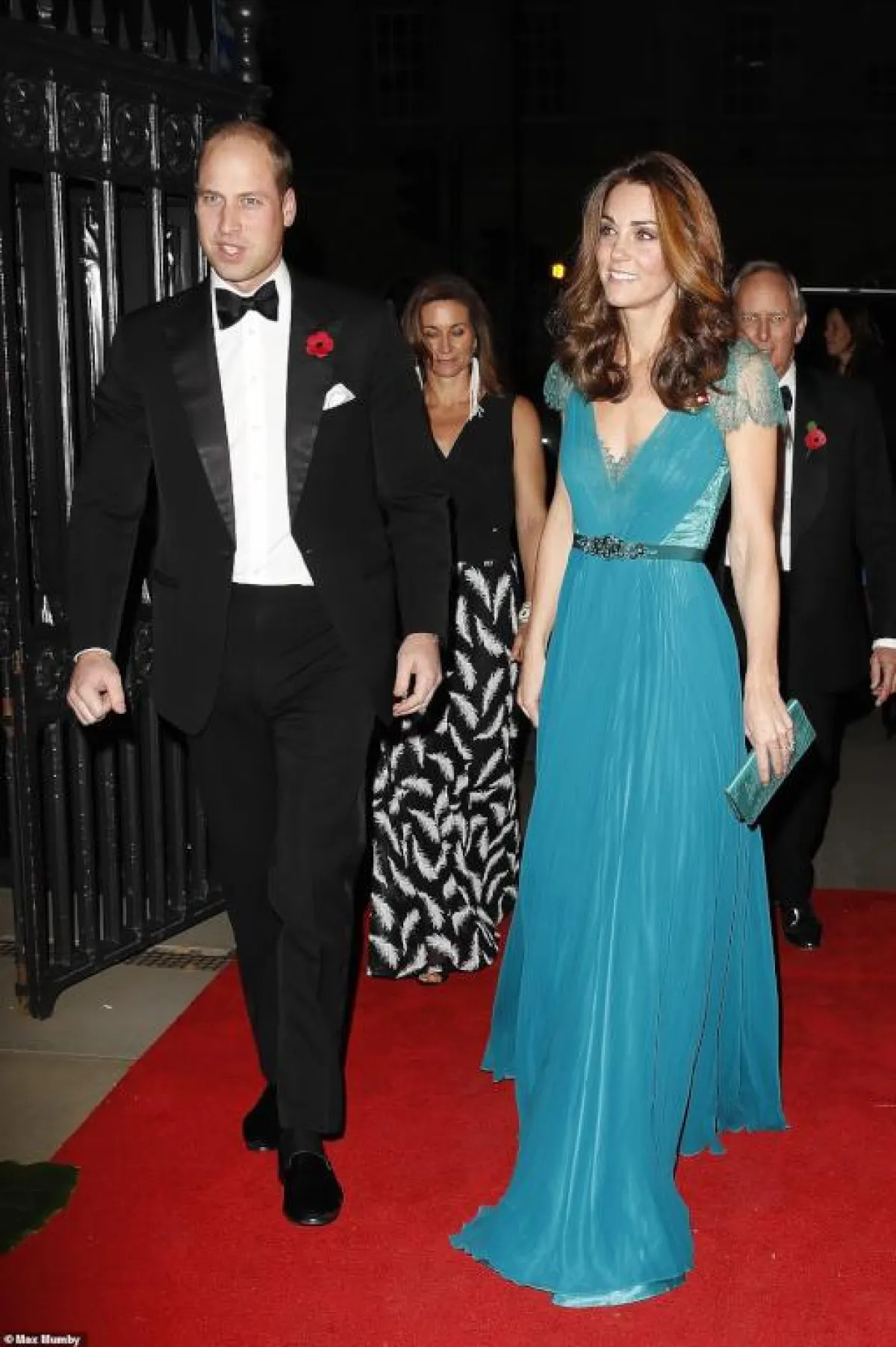 فقد حضرت كيت ميدلتون حفل توزيع جوائز Tusk Conservation والذي أقيم مساء الخميس في Banqueting House في لندن، برفقة زوجها الأمير وليام، وارتدت فستانًا أزرق اللون، من توقيع المصممة البريطانية جيني بيكهام Jenny Packham.