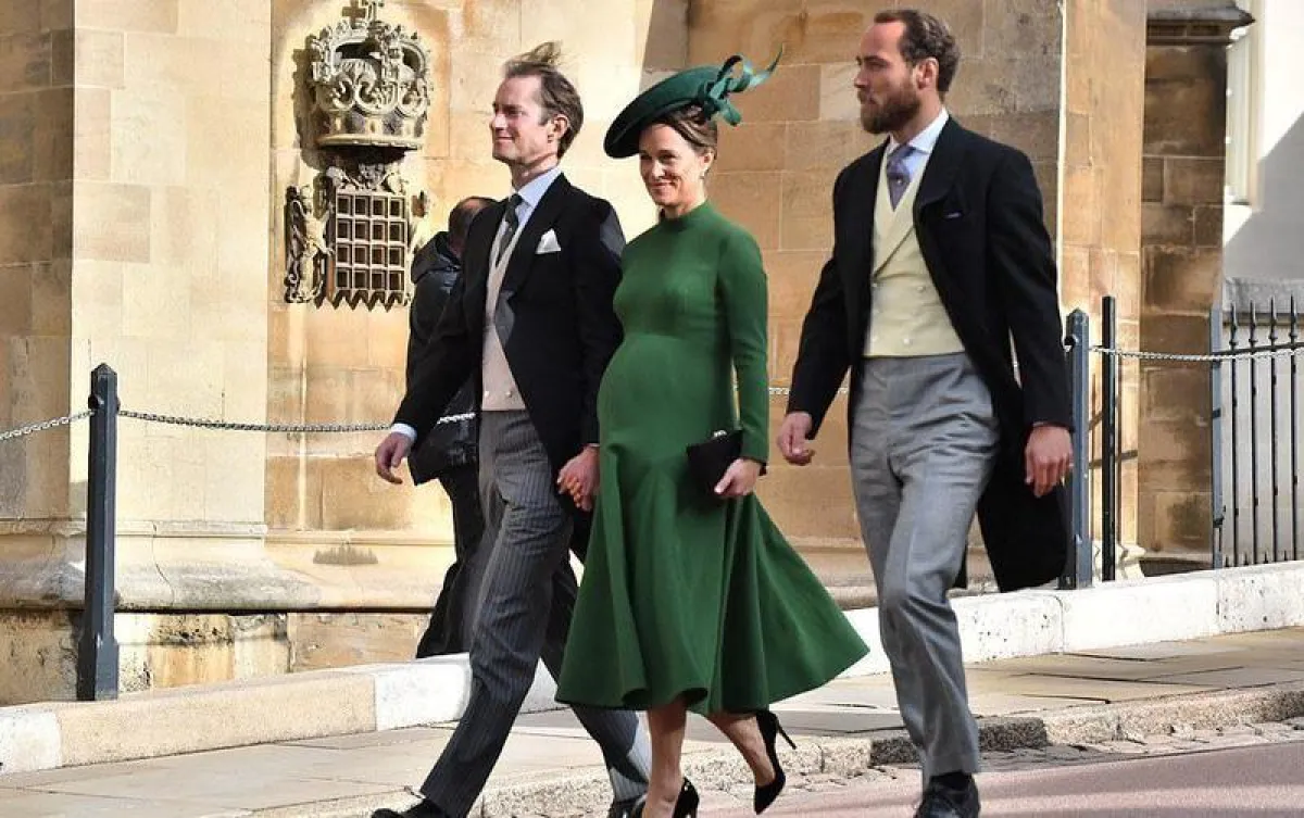 قبل ثلاثة أيام فقط من ولادة الطفل ، كان بيبا وجيمس من بين 800 ضيف داخل كنيسة سانت جورج وقلعة وندسور لحضور حفل زفاف الأميرة يوجيني وجاك بروكسبانك ، وابتسمت على نطاق واسع للتمنيات الطيبة التي تلقتها من الحضور.