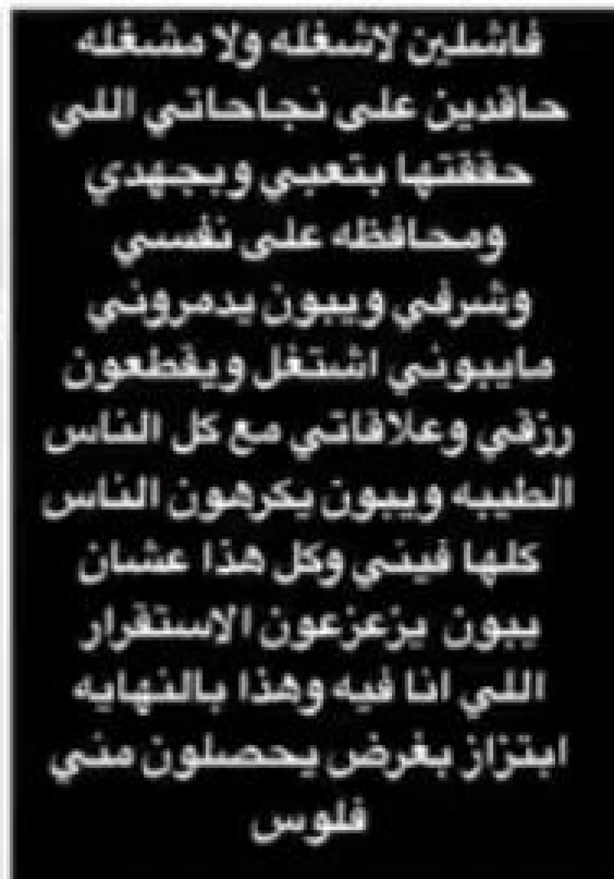 حلا أكدت أن القانون قادرعلى حمايتها منهم، واصفة إياهم بالفاشلين والحاقدين على النجاحات التي حققتها بتعبها وبالمحافظة على نفسها، وبأن هؤلاء يبحثون عن زعزعة الإستقرار النفسي الذي تعيشه وإبنزازها بهدف الحصول على المال.