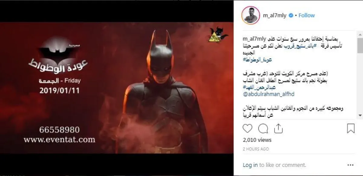 وكشف الحملي أيضاً عن عمله القادم مسرحية بعنوان " عودة الوطواط " ونشر الإعلان الخاص بالمسرحية وعلق عليه قائلاً: "بمناسبة احتفالنا بمرور سبع سنوات على تأسيس فرق باك ستيج غروب، نعلن لكم عن مسرحيتنا الجديدة " عودة الوطواط " على مسرح مركز الكويت للتوحد، بطولة نجم باك ستيج لمسرح الطفل الفنان الشاب عبد الرحمن الفهد، ومجموعة كبيرة من النجوم، والفنانين الشباب، الذين سيتم الإعلان عن أسمائهم قريباً".