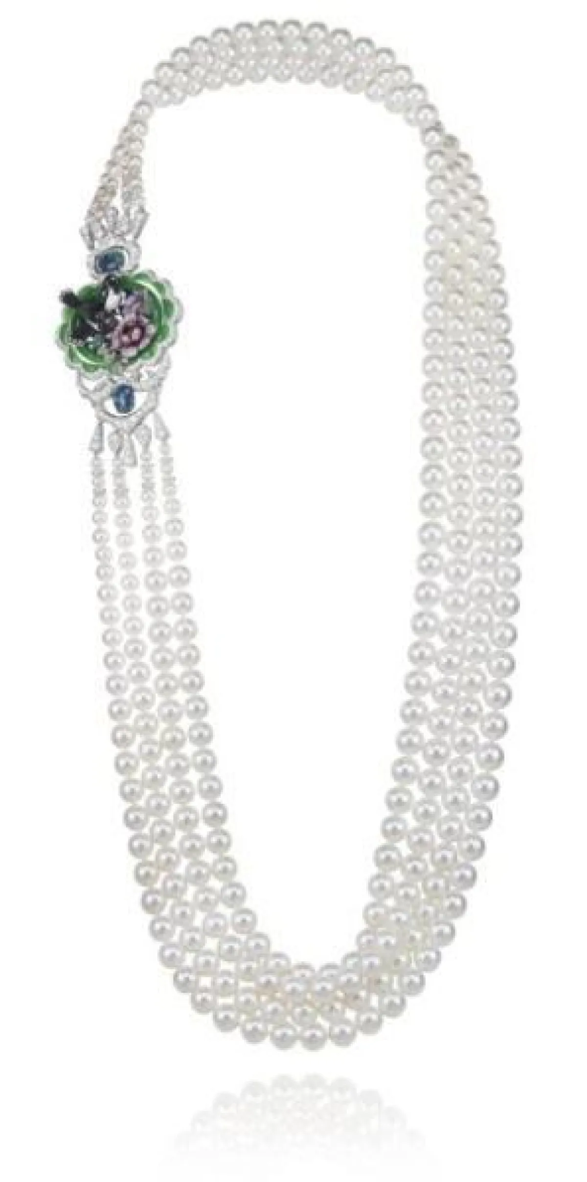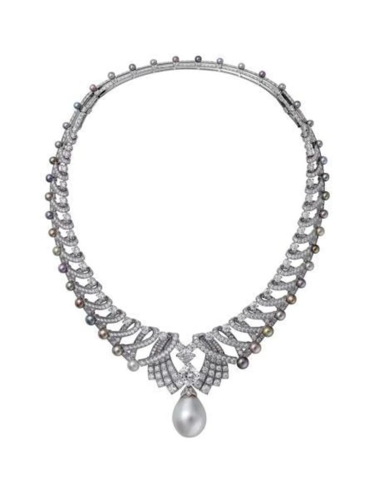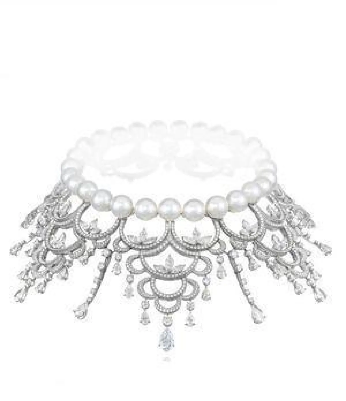 برزت القلادات المرصعة باللؤلؤ والألماس بتصاميم ناعمة وبسيطة، سواء العقود بالطبقة الواحدة والمزينة بحبّة أو أكثر من اللؤلؤ مثل تصاميم تيفاني آند كو Tiffany & Co، أو المكونة من عدة طبقات متتالية مثل قلادات شوبارد Chopard، وهاري وينستون Harry Winston.