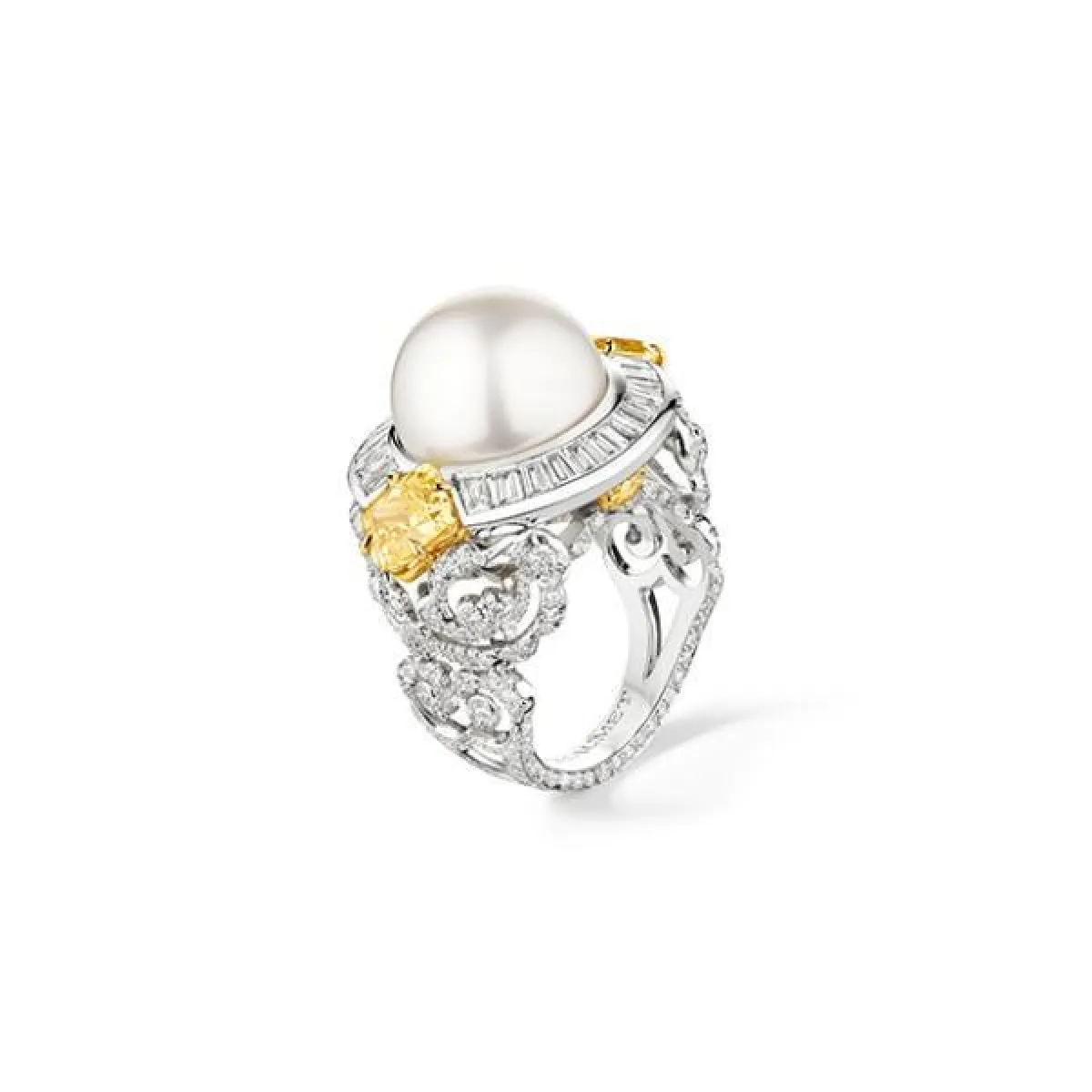 وسوف تكتمل إطلالة العروس بالخاتم المرصع بحبّة اللؤلؤ الكبيرة في منتصفه، وتحيطها الفصوص البرّاقة، مثل خاتم شوميه Chaumet الفخم، خاتم هاري وينستون Harry Winston بالذهب الأبيض والألماس، وخواتم تيفاني Tiffany بالذهب الأبيض والذهب الوردي.