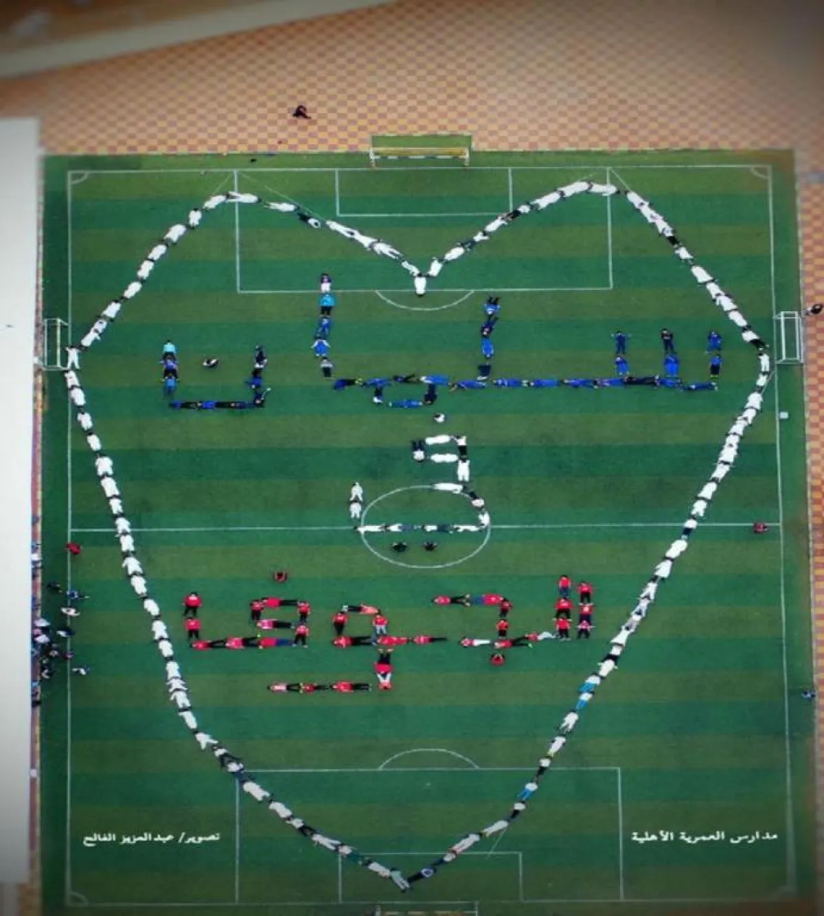 طلاب يرسمون أطول عبارة ترحيب بزيارة الملك سلمان "قلب كبير":
