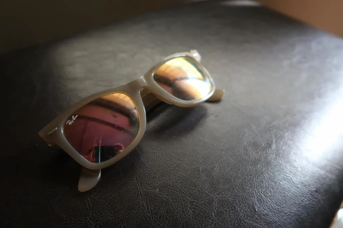 نظاراتي الشمسية من "RayBan". كنت أبحث عن نظارة سوداء عادية جداً، لكنني صادفت هذه القطعة الجميلة، وأعجبني لونها المختلف، وعلى الرغم من أنها لا تلائم وجهي كثيراً إلا أنني أحبها.