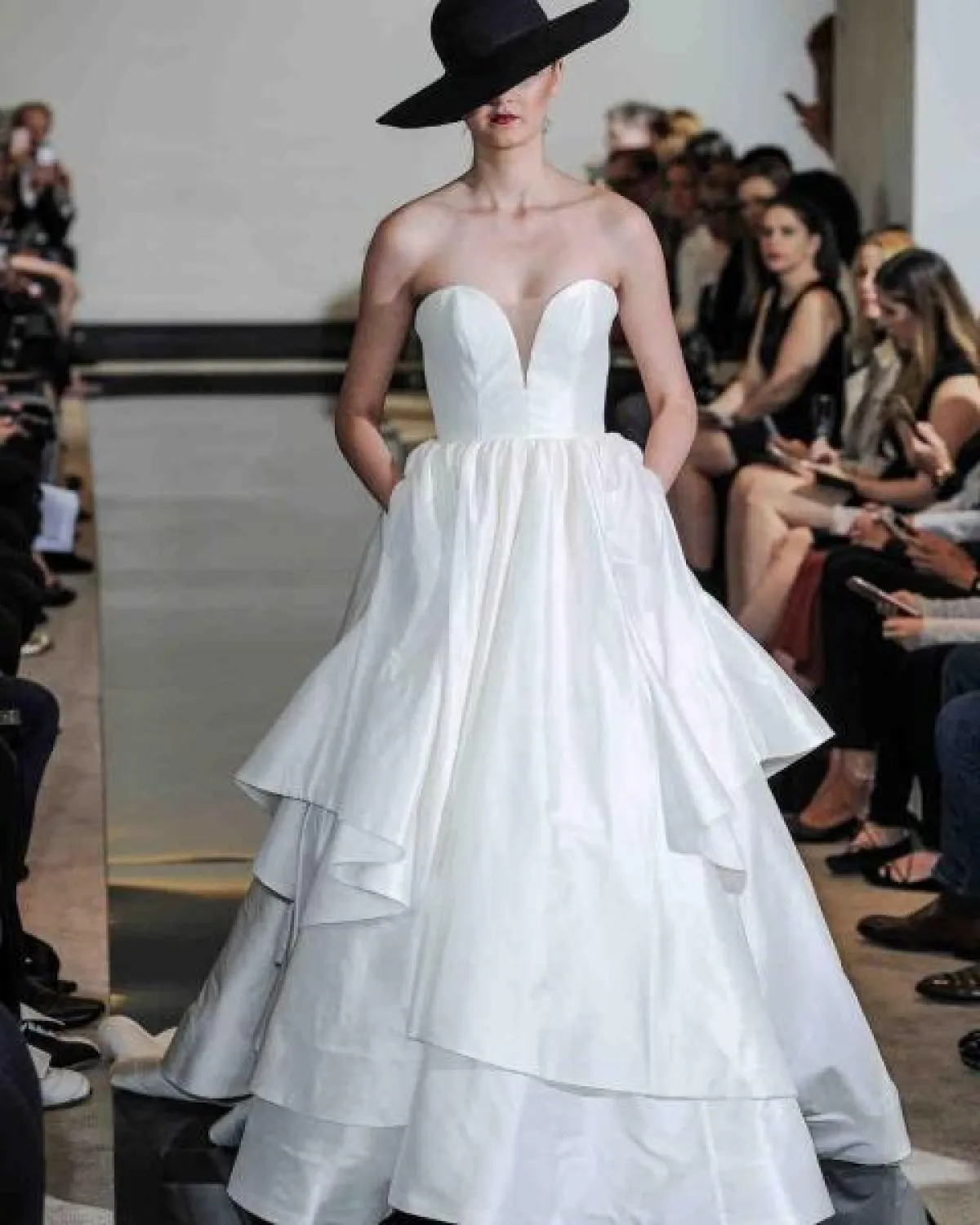 ظهرت هذه الصيحة بشكل ملفت في فساتين الـ Ball Gown مثل فساتين Ines di Santo، Rosa Clará و Lazaro ، كما أضافت الجيوب حيويّة على فساتين الزفاف القصيرة، كما شاهدناها لدى تصاميم Victor & Rolf Romona Keveza.