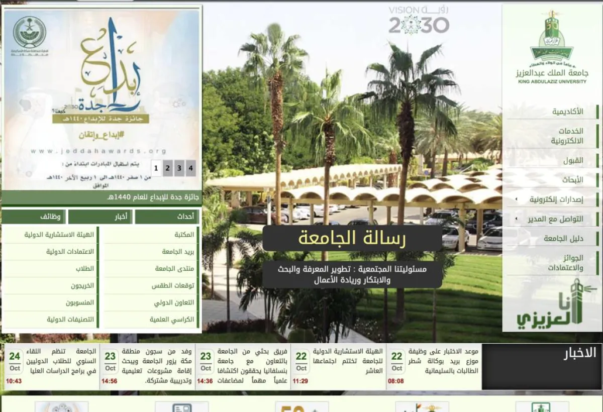 جامعة الملك عبدالعزيز هي من الجامعات النشطة إلكترونياً حيث تمكنك من تسجيل الدخول ومراقبة مستواك ونشاطاتك.