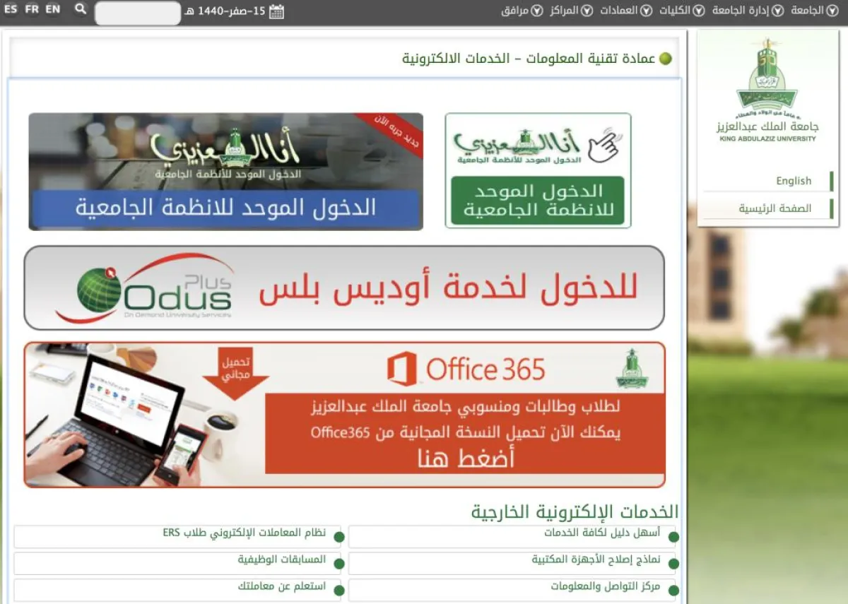 ١- الدخول إلى موقع جامعة الملك عبدالعزيز