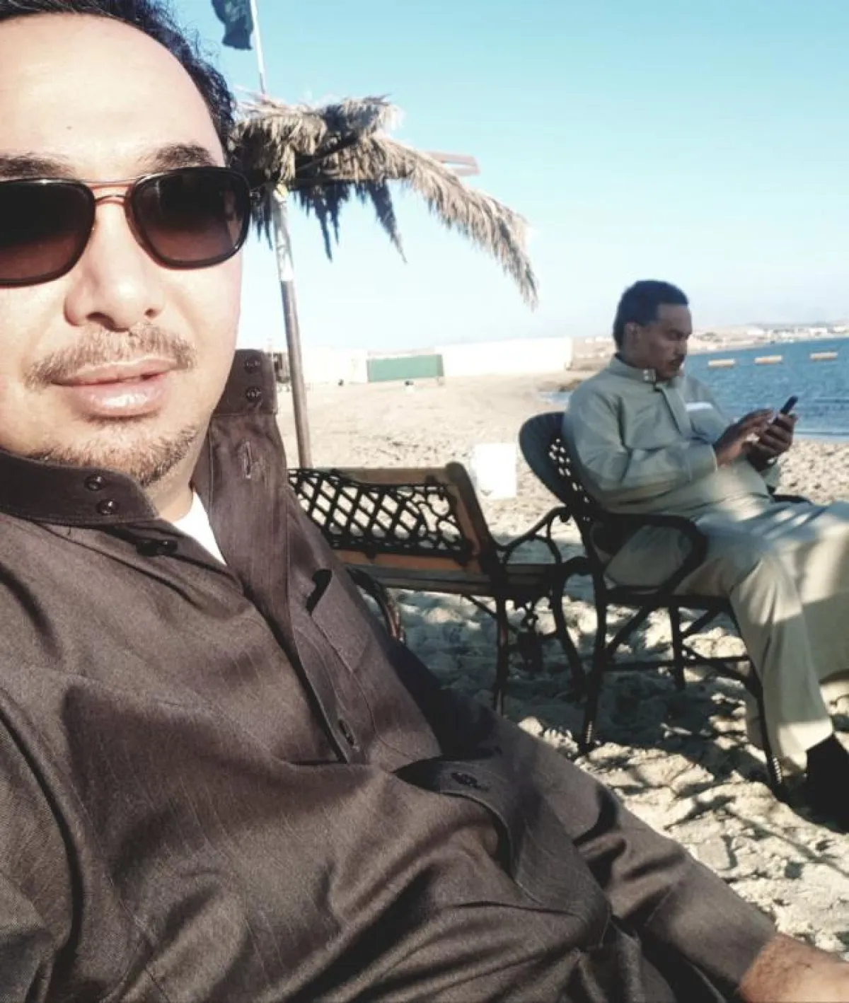 وشارك الشاعر صالح الشادي مقاطع فيديو وصوراً للفنان محمد عبده يستمتع بالأجواء الجميلة على شاطئ البحر.