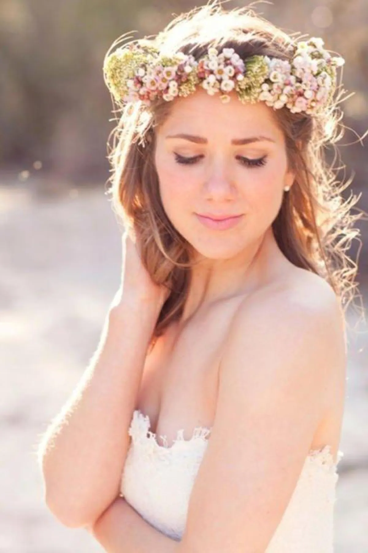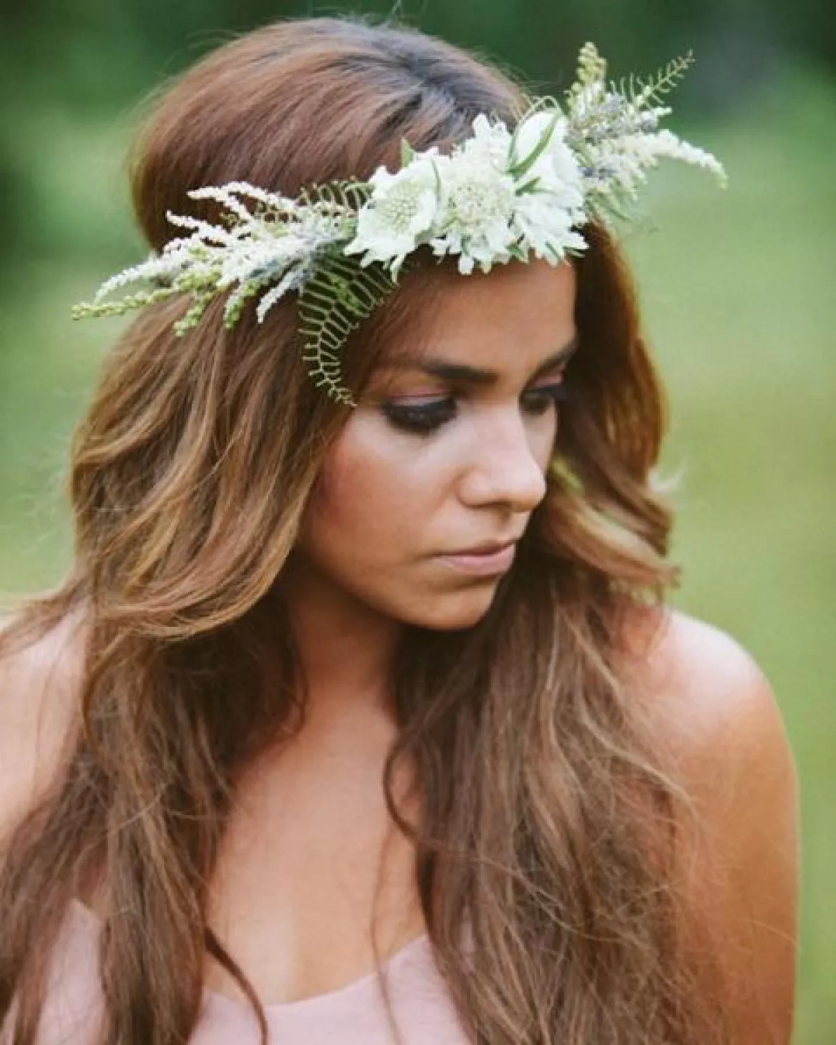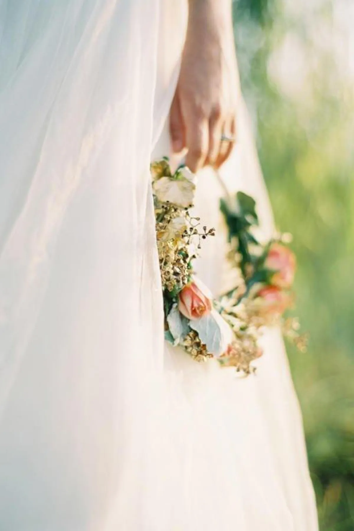 أعجبنا طوق الورد الاخضر بالكامل، مع رباط الخوص أو المصنوع من اللحاء، ضعيه على رأسكِ، واربطي به الطرحة من الخلف، وننصحكِ بأن تبتعدي هنا عن الطرح المطرزة، التي لا تتماشى مع ستايل الطوق، يمكنكِ اختيار التول أو الدانتيل الناعم.