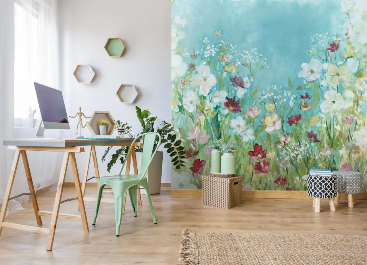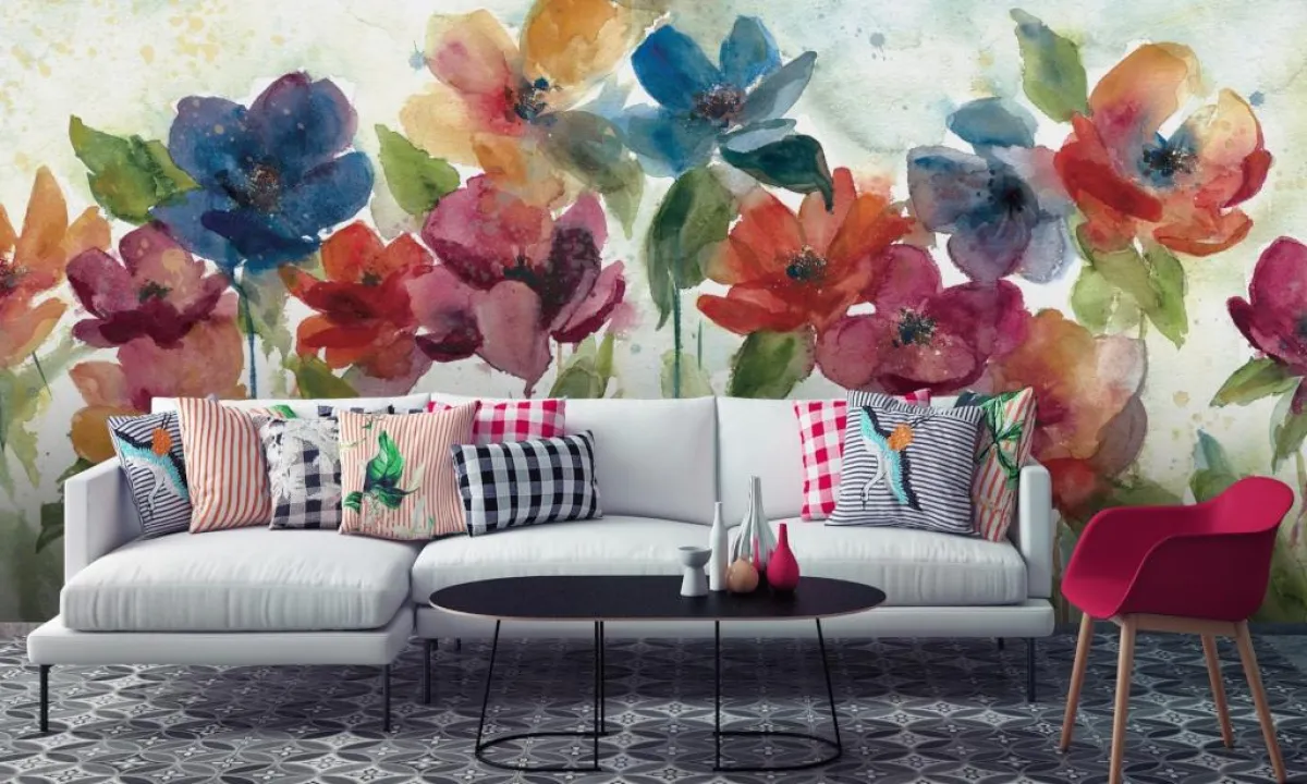 يُركِّز المصمِّمون على ورق الجدران المزيَّن بلوحات الزهور والنباتات ذات الألوان المائيَّة هذا الموسم، ورق الجدران الذي يبدو وكأنَّه جداريَّات مرسومة باليد، وبنسخة واحدة.
