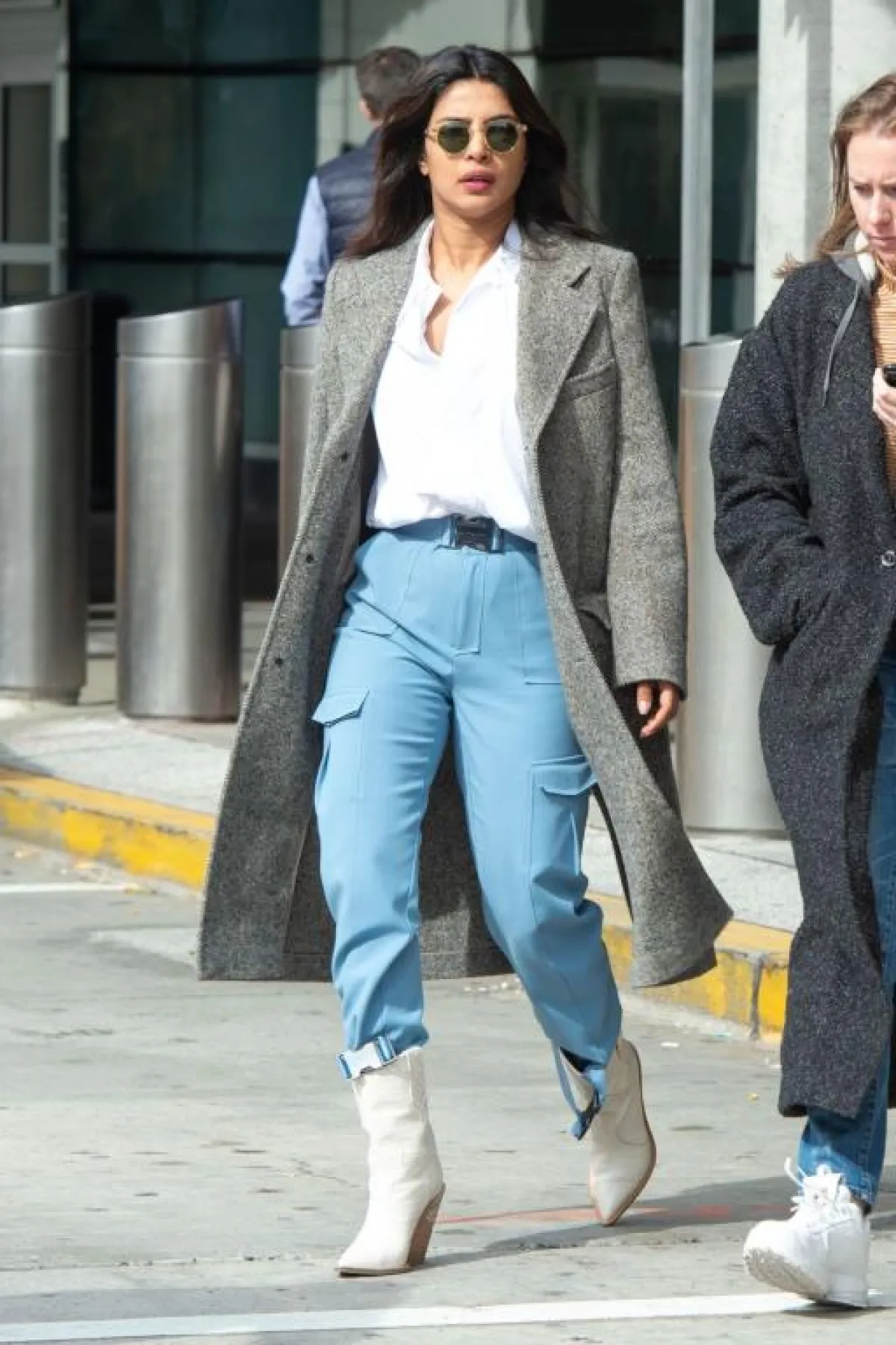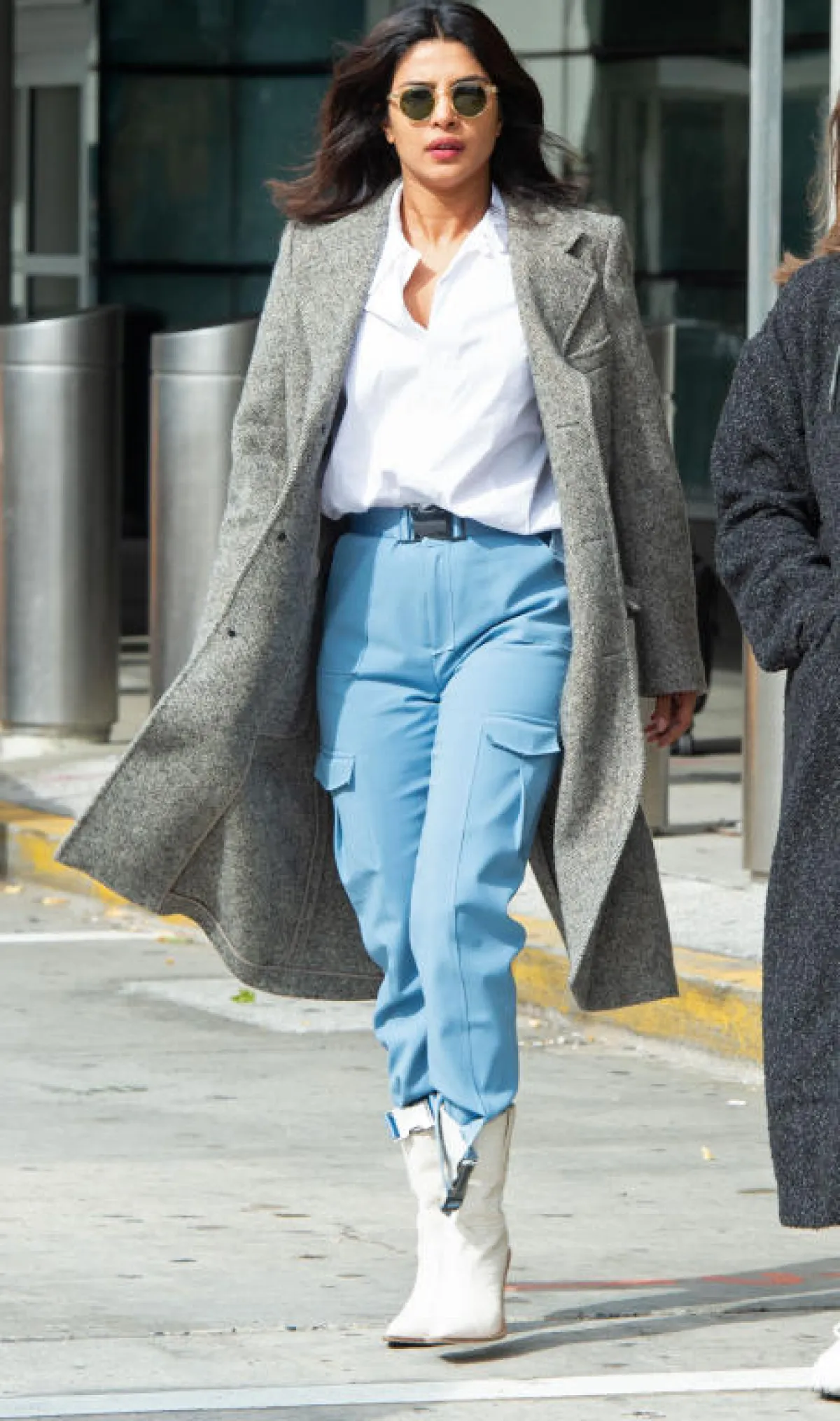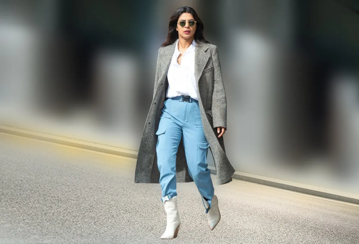 جرت العادة على تنسيق بوت الكاو بوي مع الجينز، إلا أن بريانكا شوبرا اختارت أن تنسقه بأسلوب خاص؛ حيث اعتمدت بنطلوناً عالي الخصر باللون السماوي الفاتح، مع قميص أبيض ومعطف أنيق من الصوف الرمادي، وأخيراً اكتملت الإطلالة مع الكاو بوي الأبيض من فيندي.