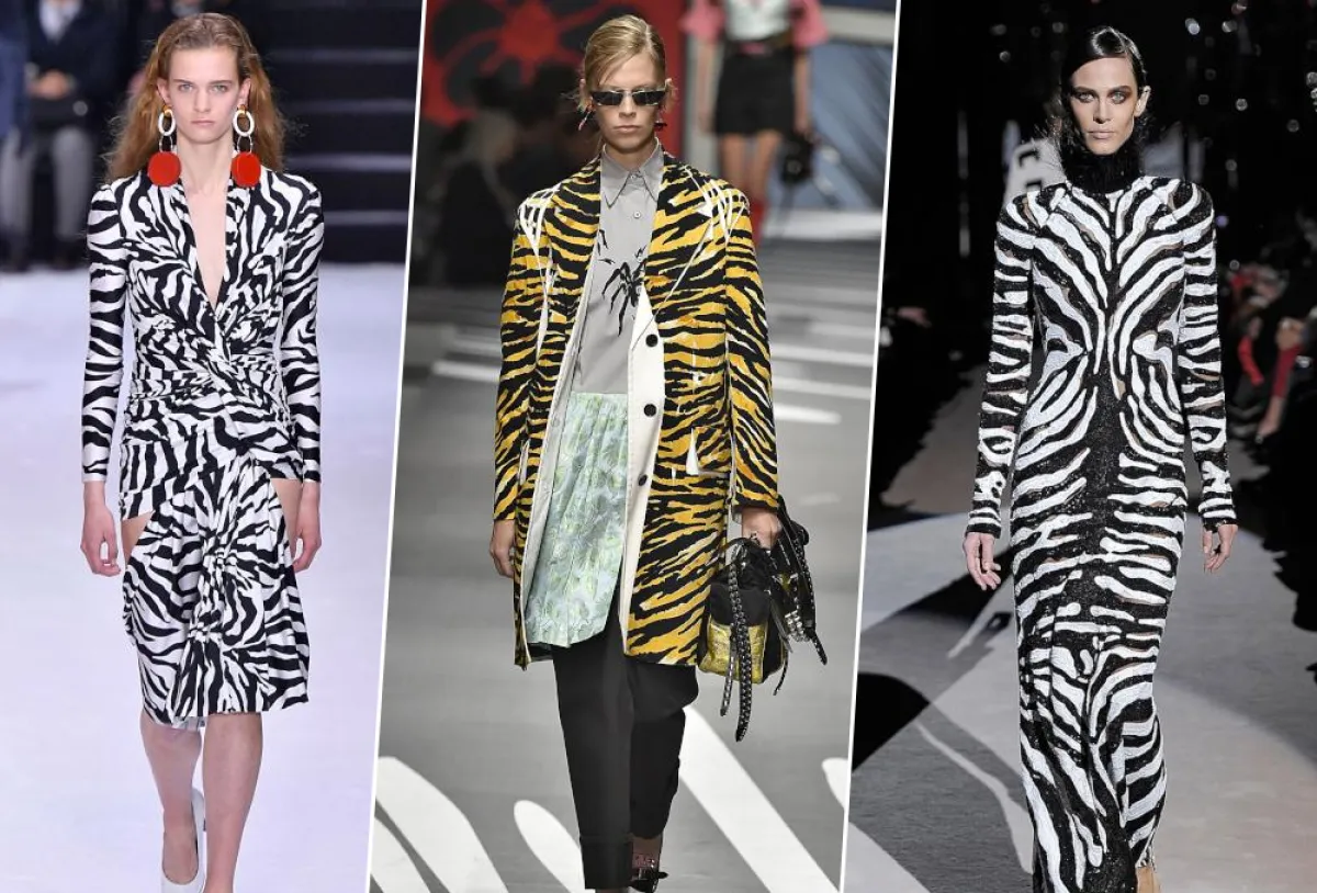 الأكثر رواجاً بين صيحة نقوش الحيوانات هي نقشة النمور التي لم تختفِ من الموضة قط، بينما شهدت تطورات في دلالاتها، كما عادت نقشة الحمار الوحشي من موضة ثمانينيات القرن الماضي، وقدمها بقوة مجموعة من دور الأزياء العالمية مثل: آدم سلمان، وبالينسياغا Balenciaga، وزاديج أند فولتير Zadig & Voltaire.