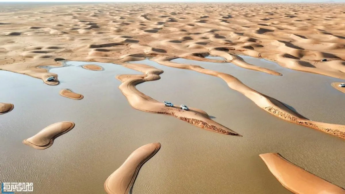 نشر ثامر الثميري، المصور الفوتوغرافي السعودي، صوراً رائعة، التقطها بكاميرا دورن، وثَّق فيها تجمعات مياه الأمطار في صحراء الدهناء، غرب أم الجماجم التابعة لمحافظة المجمعة في العاصمة الرياض.