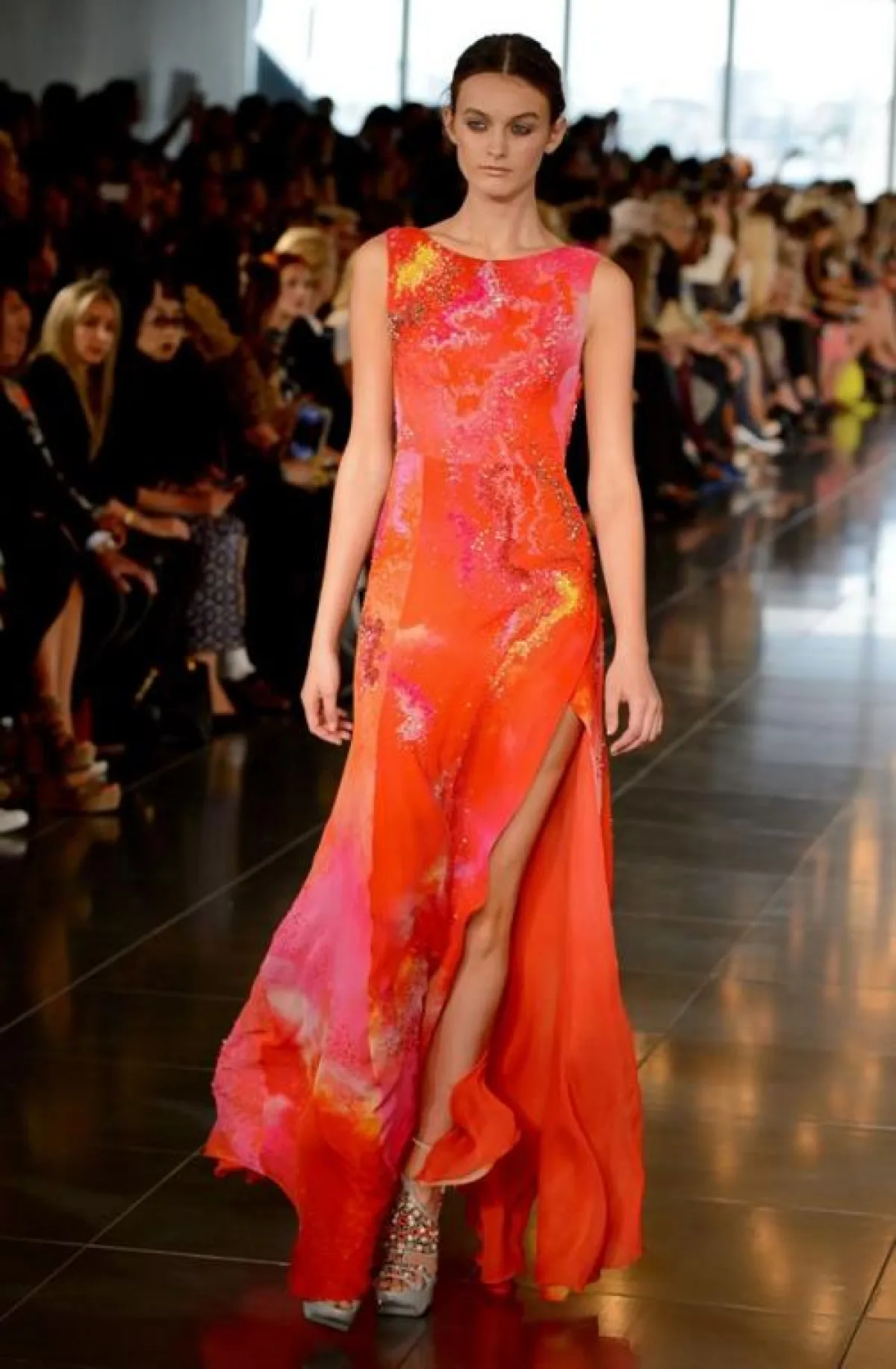 وإليك اللون البرتقالي كما ظهر على منصات العروض بتوقيع أشهر المصممين ومنهم : " ماثيو ويليامسون" و" ديفيد كوما " و " جاسبر كونران " و" دار فيرساتشي " و" دار بوتيغا فينتا" و"دار دولتشي آند غابانا " و" دار ميسوني " و" دار موستشينو" و" دار آيسبرغ" وآخرين .