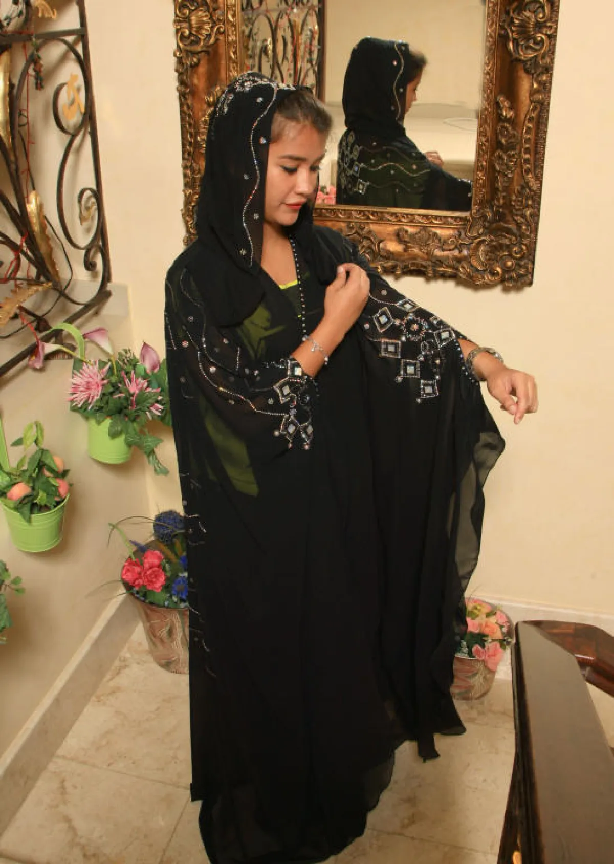 تتميز العباءة السعودية بأنها تتماشى مع الموضة أولاً بأول؛ فهي اهتمام كل سيدة تهتم بأناقتها وإطلالتها، فأنا أتابع جميع الموضة من ألوان وكلف وقصات، والتي تدخل في تصميم العباءات، وأقتنيها كلها من خارج السعودية؛