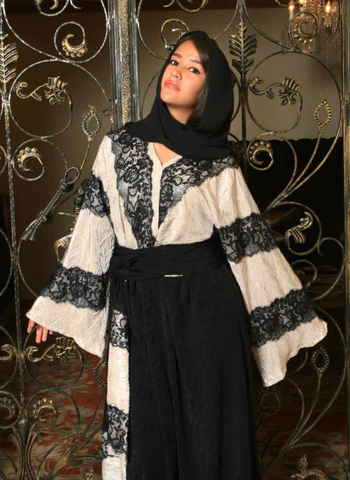 الأبيض والأسود والبيج و«التشوكليت»، فأنا لا أحب أن ألعب في الألوان كثيراً؛ كي لا أضيع هوية العباءة، وتتحول إلى فستان فأنا أستخدم الألوان بحدود. فأعتمد على أن تكون غالبية العباءات من اللون الأسود، والألوان الأخرى تدخل على العباءة كتصميم في الموديل، وليس اللون الأساسي.