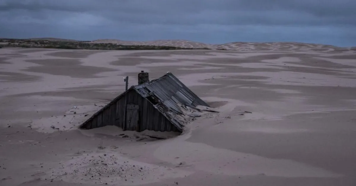 شيئاً فشيئاً، تختفي قرية «شوينا» تحت رمال أحد السواحل «البحر الأبيض»، وهو بحر داخلي في شمال الجزء الأوروبي من روسيا، تختفي إلى الدرجة التي تجبر سكانها للدخول إلى بيوتهم عبر الغرف التي تقع على أسطح هذه المنازل، التي لا يظهر منها للعيان سوى هذه الأسطح، أو أجزاء منها فقط، جراء ظاهرة موجات الرمال العجيبة التي تضربها بشكل مستمر، والتي يعتقد أنها من صنع البشر، ما يجعل مشقات ومتاعب الحياة مضاعفة لسكان هذه القرية.
