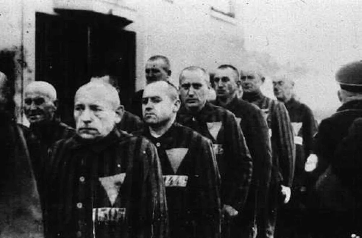 تشير المراجع التاريخية إلى أنه على أيام أدولف هتلر السياسي الألماني النازي، قد تم استخدام شعار المثلث الزهري والذي كان واحداً من شارات النازية في معسكرات الاعتقال، والذي كان يشير إلى السجناء الذكور الذين تم إرسالهم هناك بسبب ميولهم المثلية، بالإضافة إلى أنه قد استخدم لتحديد مرتكبي الجرائم الجنسية بما في ذلك (الاغتصاب، المتحرشين بالأطفال) وكان على كل سجين ارتداء مثلث رأسه يشير إلى الأسفل على سترته، ومن وقتها بدأ الرجال يتجنبون ارتداءه حتى لا يتهمون بالمثلية.