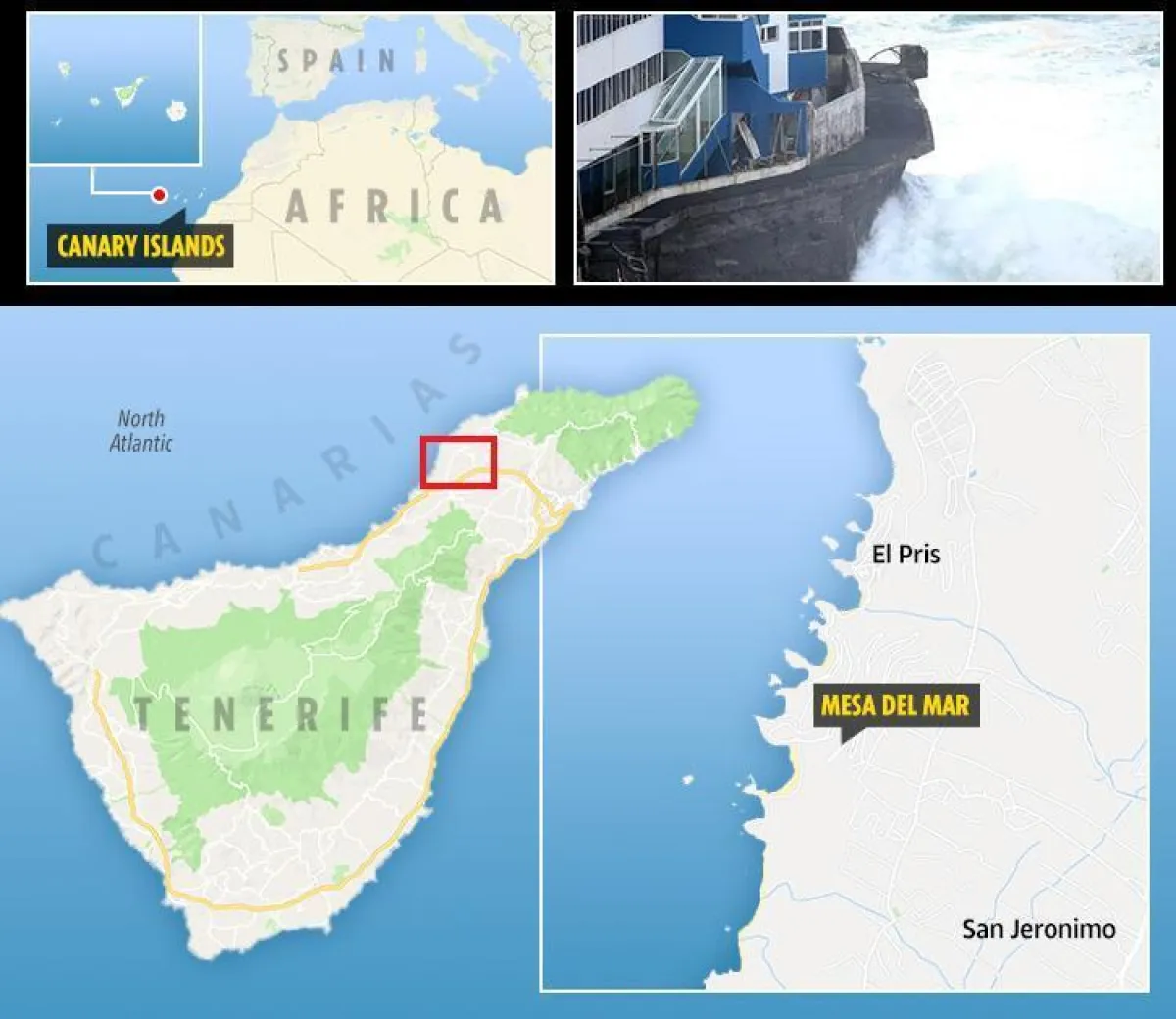 على الرغم من أنه يبدو مشهداً مرعباً ومخيفاً، بل ومدمراً قاتلاً أيضاً في الوقت نفسه، إلا أنه وبدون أدنى شكّ، مشهد يؤكد على قوة وعظمة الطبيعة، وذلك ما أظهره مقطع فيديو مصور، تم تداوله على نطاق واسع عبر عدد من وسائل الإعلام والمواقع الإلكترونية العالمية، من لقطات مخيفة لأمواج ضخمة تضرب مبنى في الساحل الشمالي من مدينة «تينيريفي»، التي تعد أكبر جزر «الكناري».