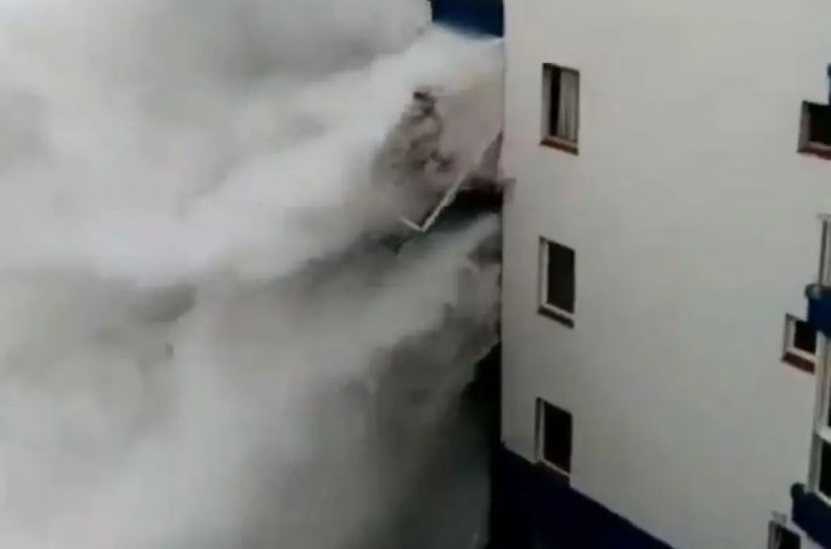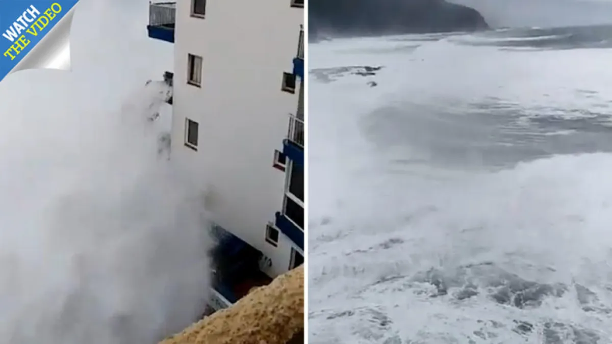ويبرز الفيديو، الذي التقطه أحد الناشطين على مواقع التواصل الاجتماعي، الأمواج الهائلة والعظيمة، التي تجتاح البحر وتصطدم ببناية شاهقة قريبة من الشاطئ جداً، حيث تمكنت قوة هذه الأمواج أن تقتلع بعض الشرفات من هذه البناية بسهولة مدهشة، كما خلف البحر المضطرب العديد من الخسائر المادية بالساحل الجنوبي للجزيرة، بعدما حطم نوافذ مطعم يتواجد بأحد الفنادق.