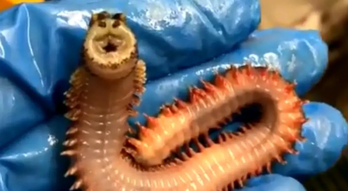 وكشف مقطع فيديو، قد انتشر على موقع التدوينات القصيرة "تويتر"، المخلوق وهو يتحرك على يد الصياد، بينما يُحرك وجهه من الداخل، مما يجعله يبدو وكأنه مبتسم دائماً.