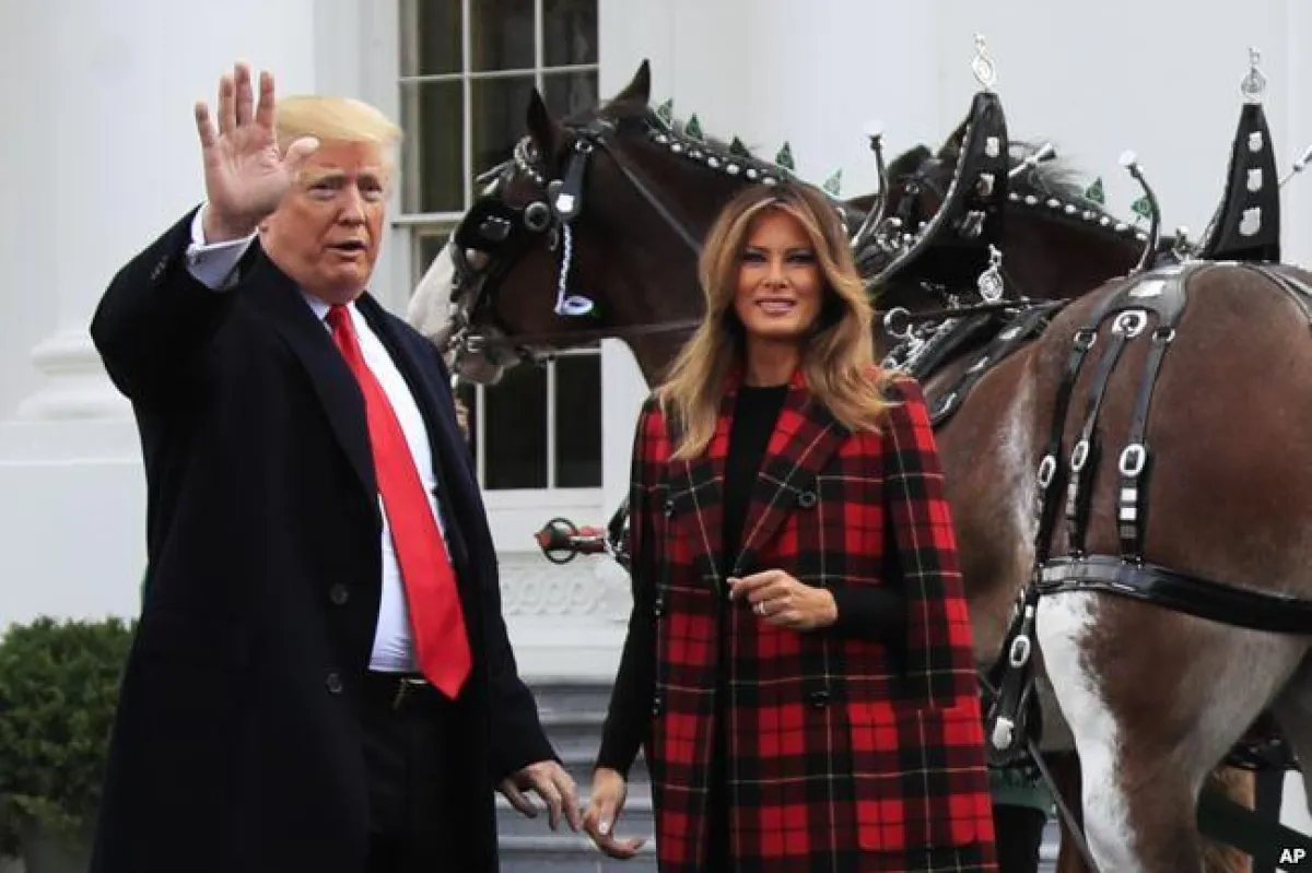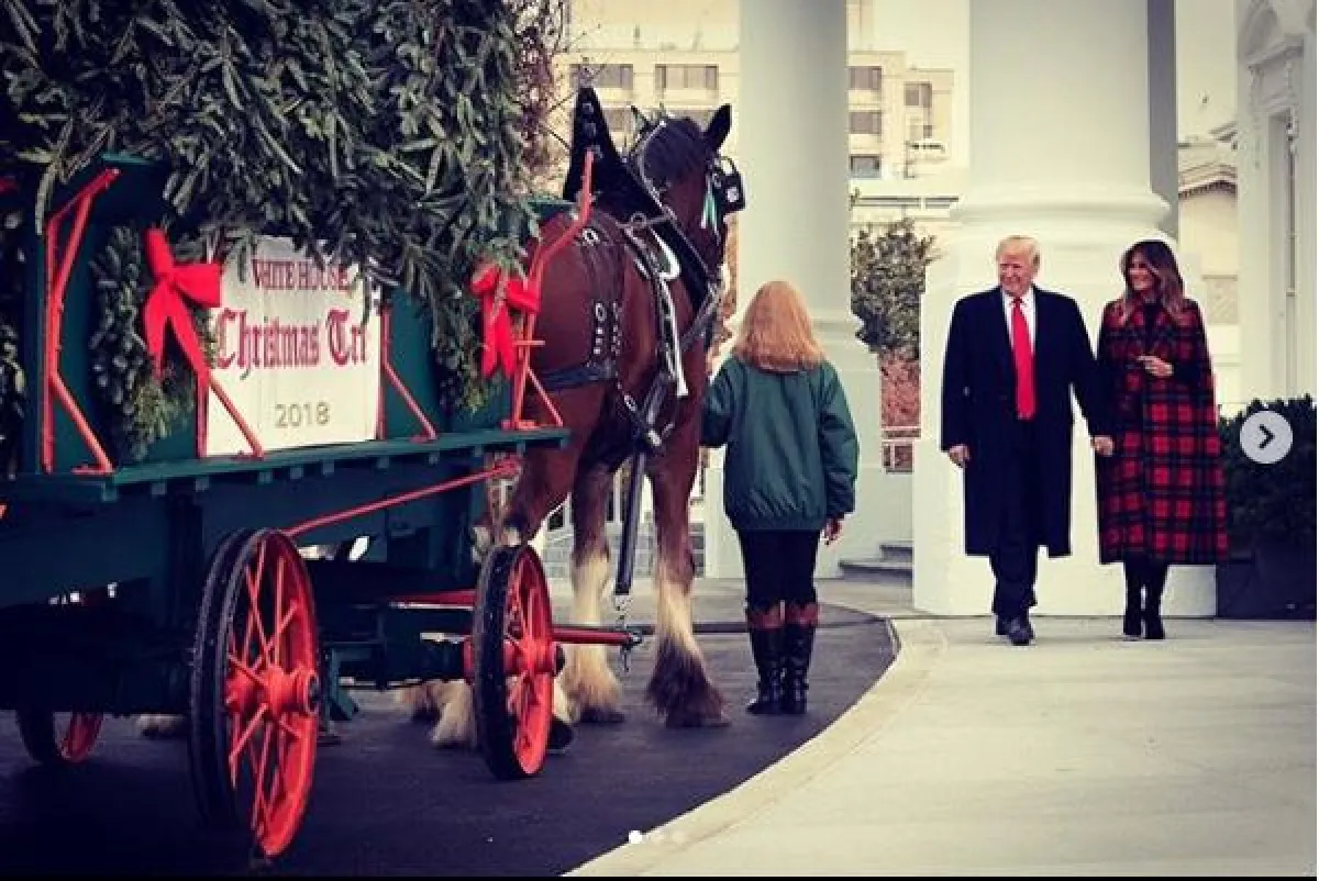 أطلت ميلانيا ترامب Melania Trump زوجة الرئيس الأمريكي دونالد ترامب، خلال استقبالها برفقة زوجها شجرة الميلاد عند مدخل البيت الأبيض، بمعطف جديد من ماركة Michael Kors العالمية وبنقشة الكاروهات التي جمعت بين اللونين الأحمر والأسود، وبلغت تكلفة التصميم 3,995 دولاراً أمريكياً.