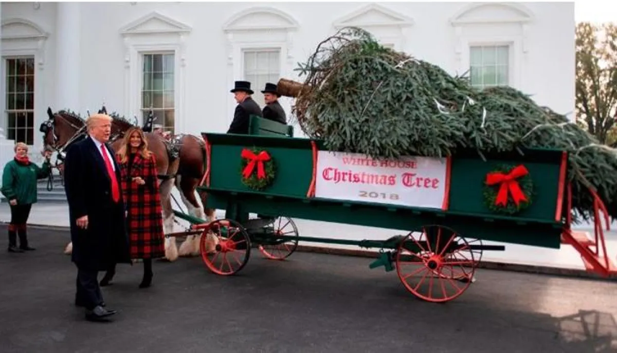 ووصلت الشجرة المحمولة بواسطة عربة يجرها حصانان إلى البيت الأبيض، بينما تجمع ضيوف الرئيس وزوجته لمشاهدة وصول الشجرة إلى مقرها الجديد.