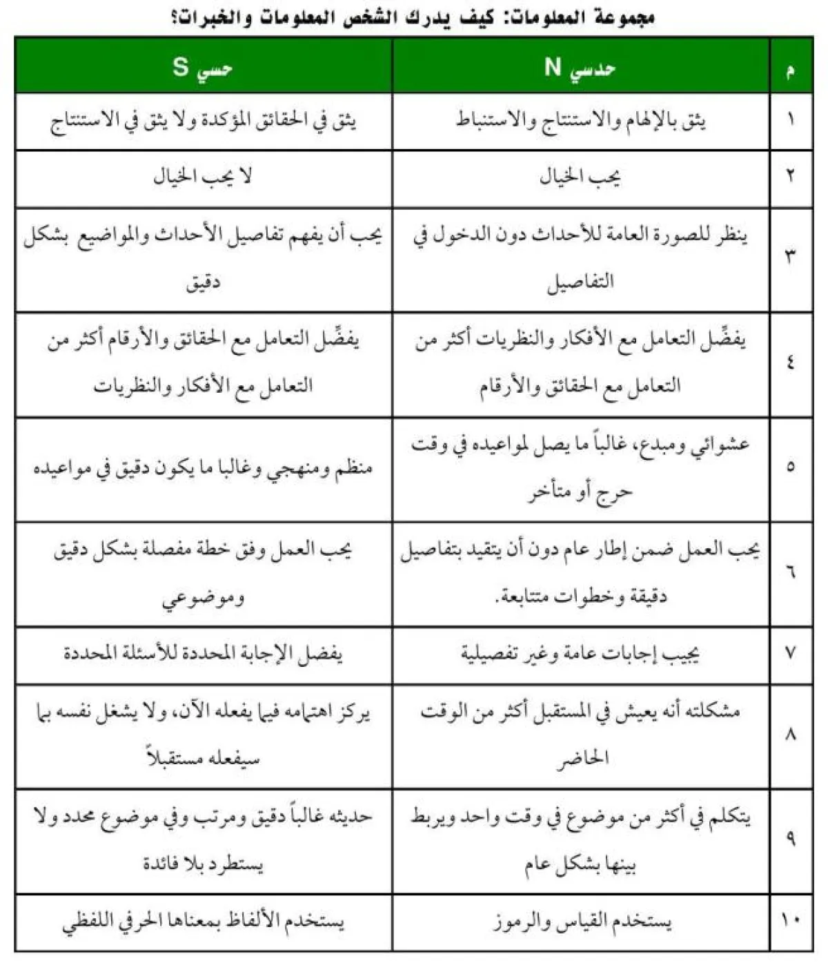 • الحركي ESTP: اجتماعي E، حسي S، منطقي T، مرن P.