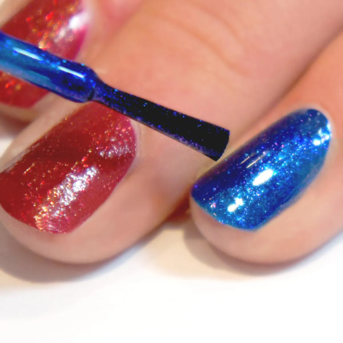 2.طبِّقي اللون الأزرق الملكيّ على واحد من أصابعك، وليكن الخنصر.