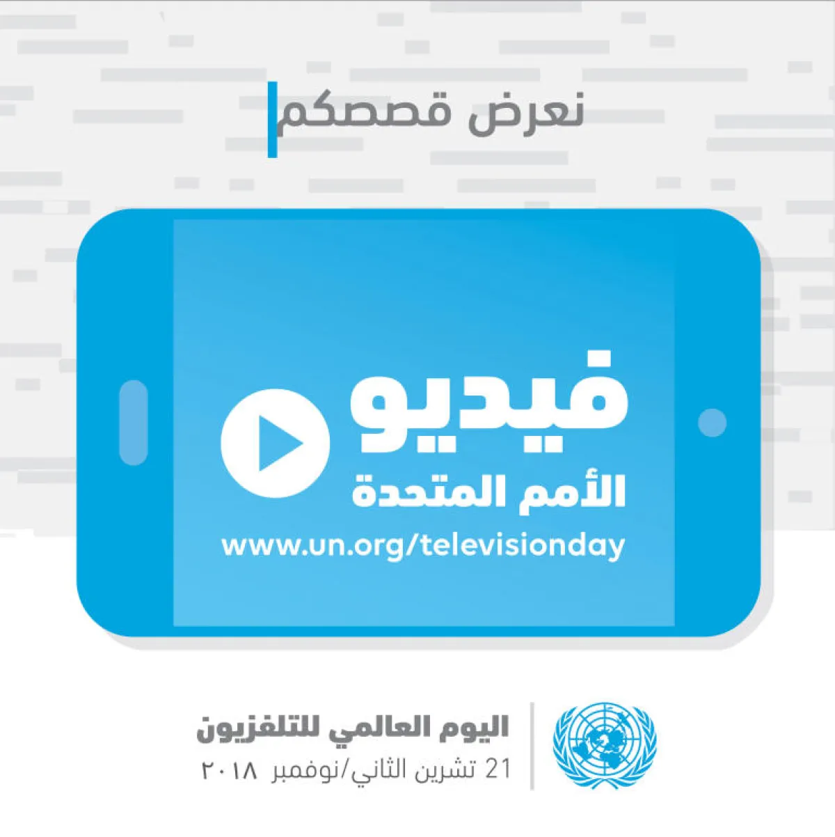 واحتفلت الأمم المتحدة، عبر موقعها الإلكتروني الرسمي، بـ"اليوم العالمي للتلفزيون"؛ موضحةً أنه تم إطلاق هذه المناسبة، من خلال إعلان الجمعية العامة في تاريخ 17 كانون الأول/ ديسمبر من العام 1996، عبر قرارها رقم "51/205"، وذلك اعترافًا بتأثير التليفزيون المتزايد في صنع القرار، من خلال لفت انتباه الرأي العام إلى المنازعات والتهديدات التي يتعرض لها السلام والأمن، ودوره المحتمل في زيادة التركيز على القضايا الرئيسية الأخرى، بما في ذلك القضايا الاقتصادية والاجتماعية.