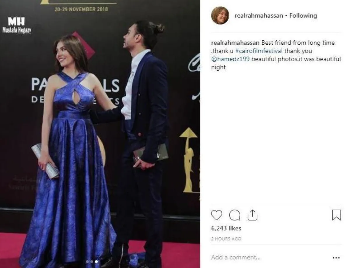أثار ظهور الفنانة رحمة حسن في حفل افتتاح مهرجان القاهرة السينمائي بصحبة شاب جدلاً كبيراً على مواقع التواصل الاجتماعي، خصوصاً بعد قيامها بنشر صورتها معه عبر صفحتها الشخصية على "إنستقرام"، دون أن توضح طبيعة العلاقة التي تربطها به.
