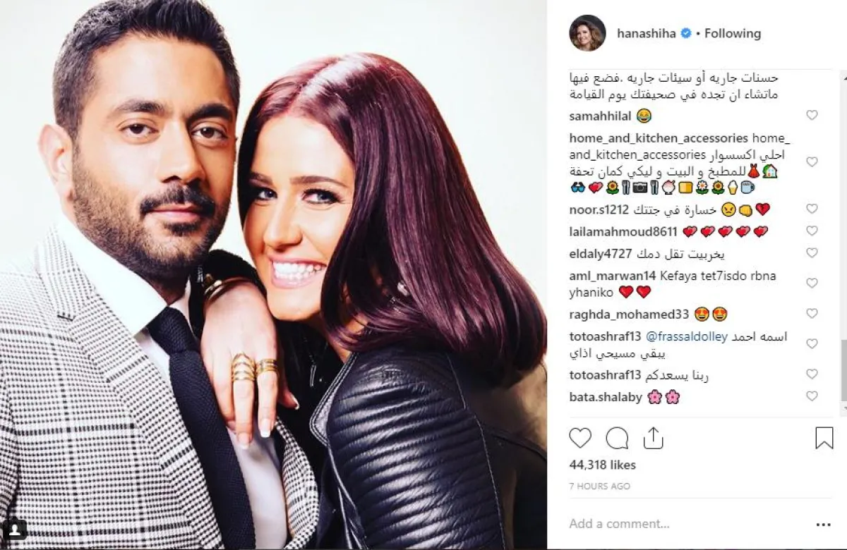 هنا نشرت صورة تجمعها بزوجها أحمد فلوكس من بوستر مسلسل "نصيبي وقسمتك" الجزء الثاني، وعلقت عليها قائلة : God sent you to me، مع وضع أيقونة قلب أحمر، والإقتباس من أجمل رسائل دوستويفسكي وأقصرها لزوجته آنا ويقول فيها: "أرسلك الله لي كي أكفر بك عن ذنوبي الهائلة".
