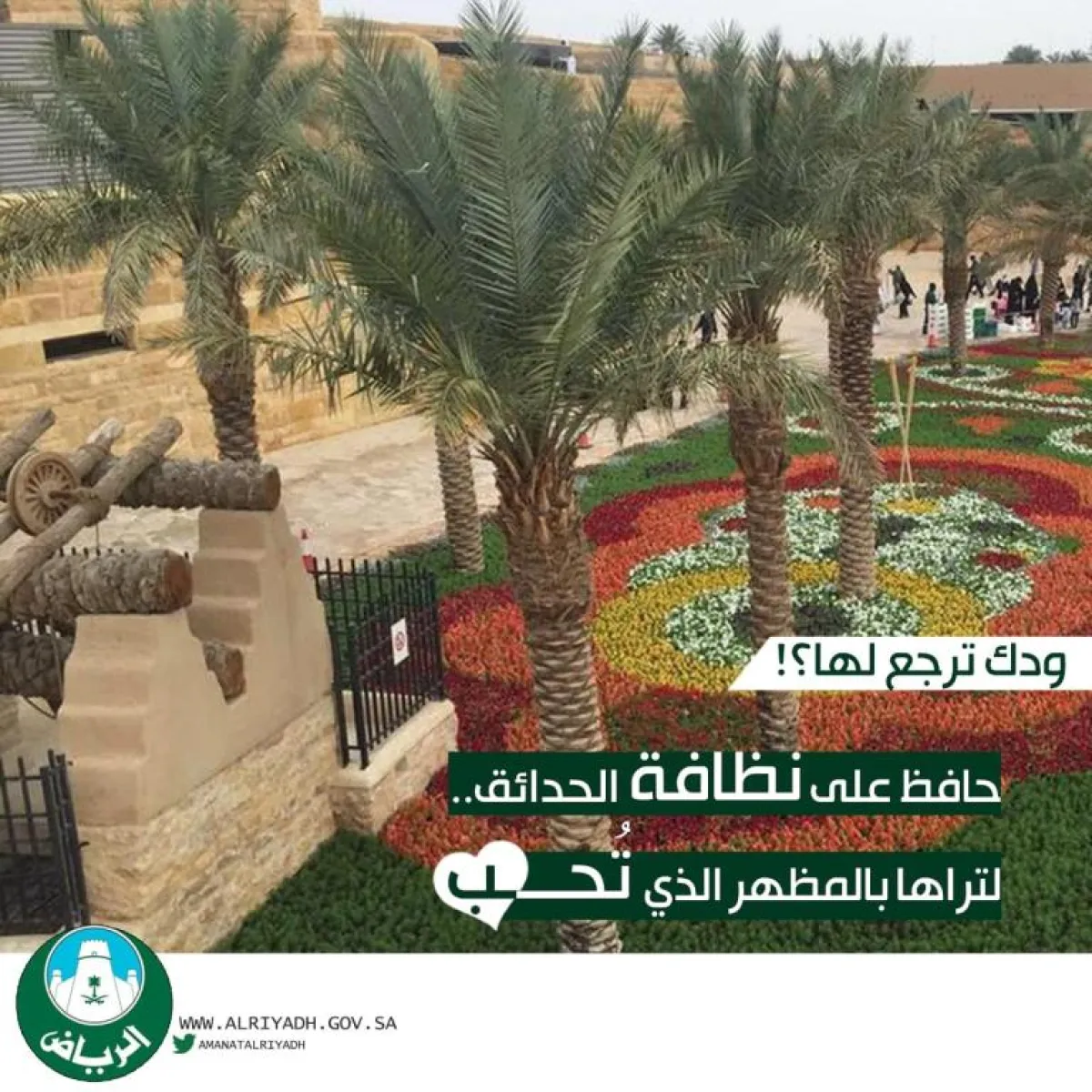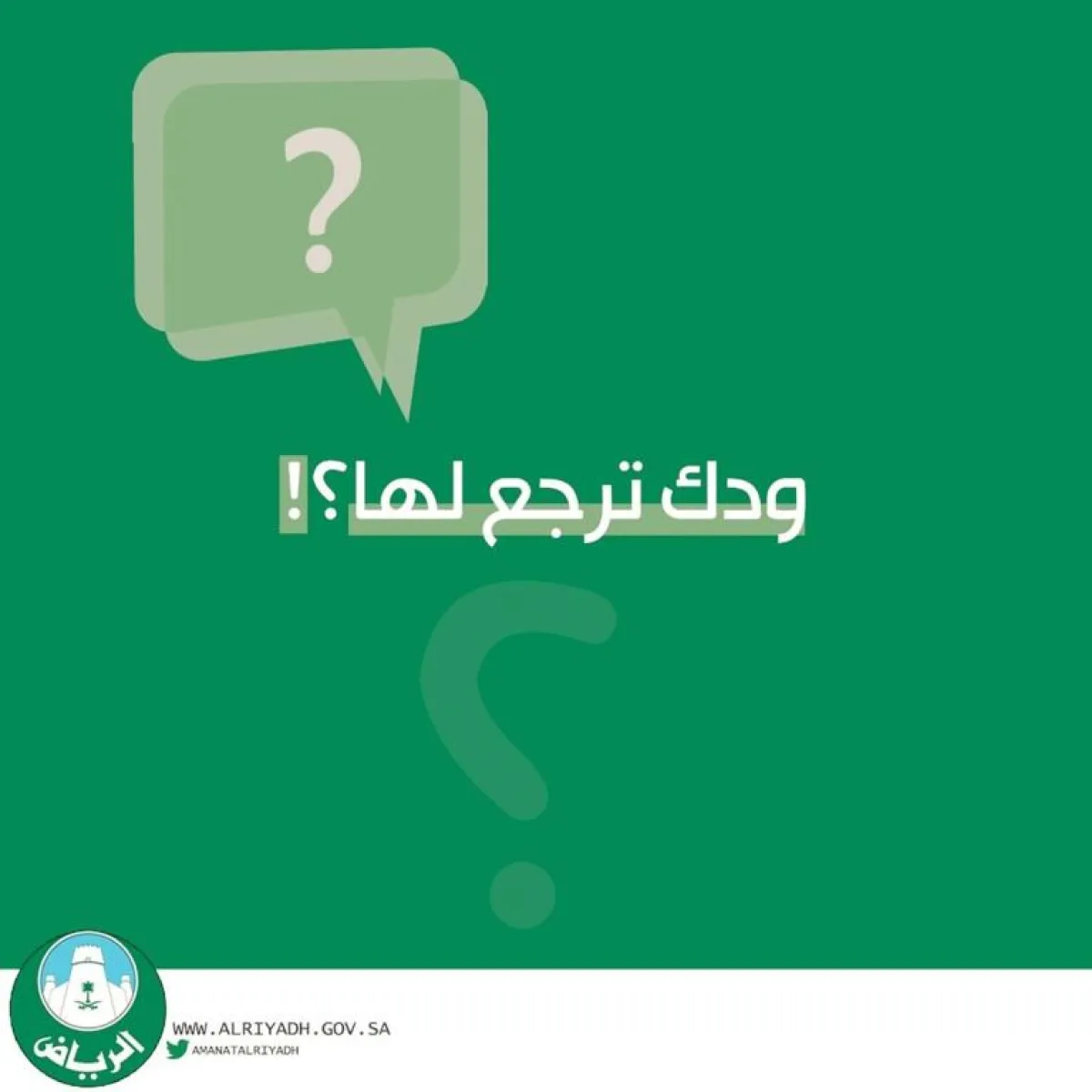 في نمط توعوي غير تقليدي، طرحت أمانة منطقة الرياض على حسابها في تويتر عبارة "ودك ترجع لها" وتركتها معلقة أمام تخمينات المتابعين، قبل أن تستكمل الجملة بعد مرور ٢٤ ساعة لتقول: "ودك ترجع لها.. حافظ على نظافة الحدائق لتراها بالمظهر الذي تحب".