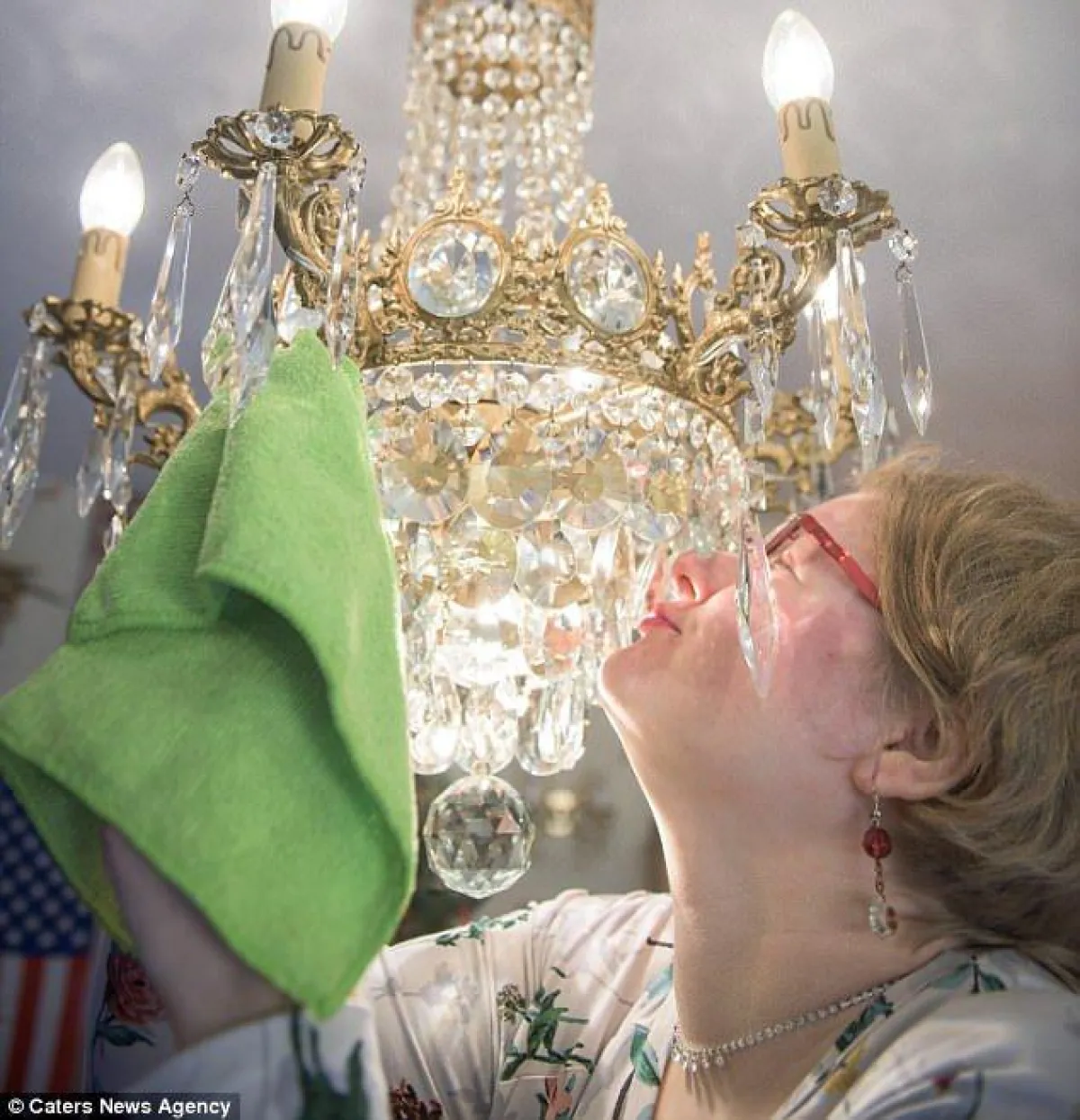 وصُممت الثريا في ألمانيا منذ 91 عاماً، بطول 28 بوصة، واستغرق وصولها من مقرها إلى منزل السيدة “ليبرتي”، في بريطانيا، 6 أيام، وتصف هي مدة الانتظار بأنها كانت على أحرّ من الجمر، خاصة أنها كانت تعلم أن الثريا ستأتي مفككة، وسيتعين عليها جمعها قطعة قطعة.