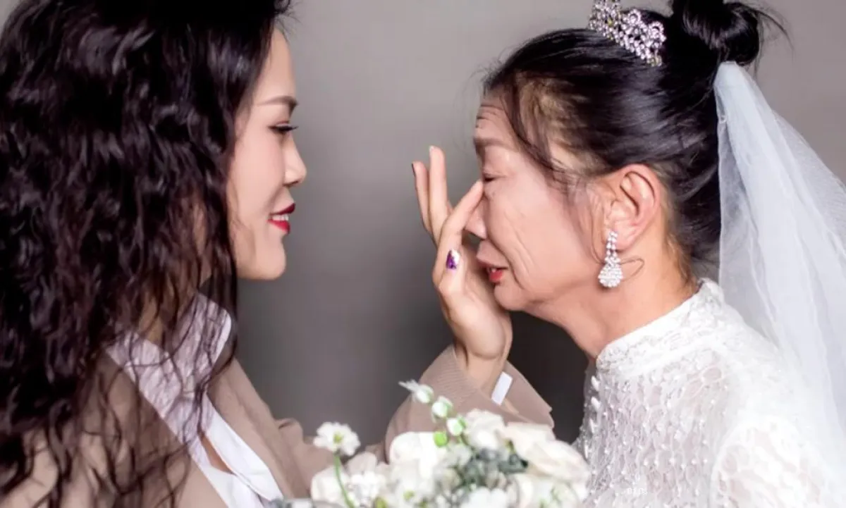 وبحسب موقع «CGTN» قررت «لو زياوكين»، فتاة من الصين، فقدت أباها وأرادت تعويض أمها عن عدم وجود صورة زفاف لها، فقامت بشراء فستان زفاف لأمها، واستأجرت لها خبير تجميل لعمل المكياج لها، وقامت بشراء بدلة الفرح لنفسها بدلاً من أبيها، وذهبا إلى استديو التصوير والتقطا صور زفاف بديعة.