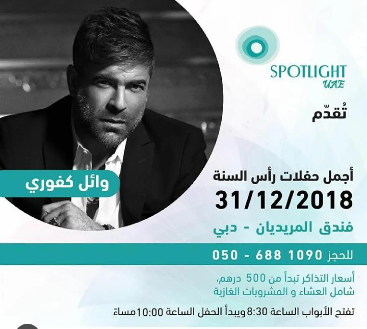 وائل كفوري سوف يحيي حفل رأس السنة في فندق المريديان- دبي.