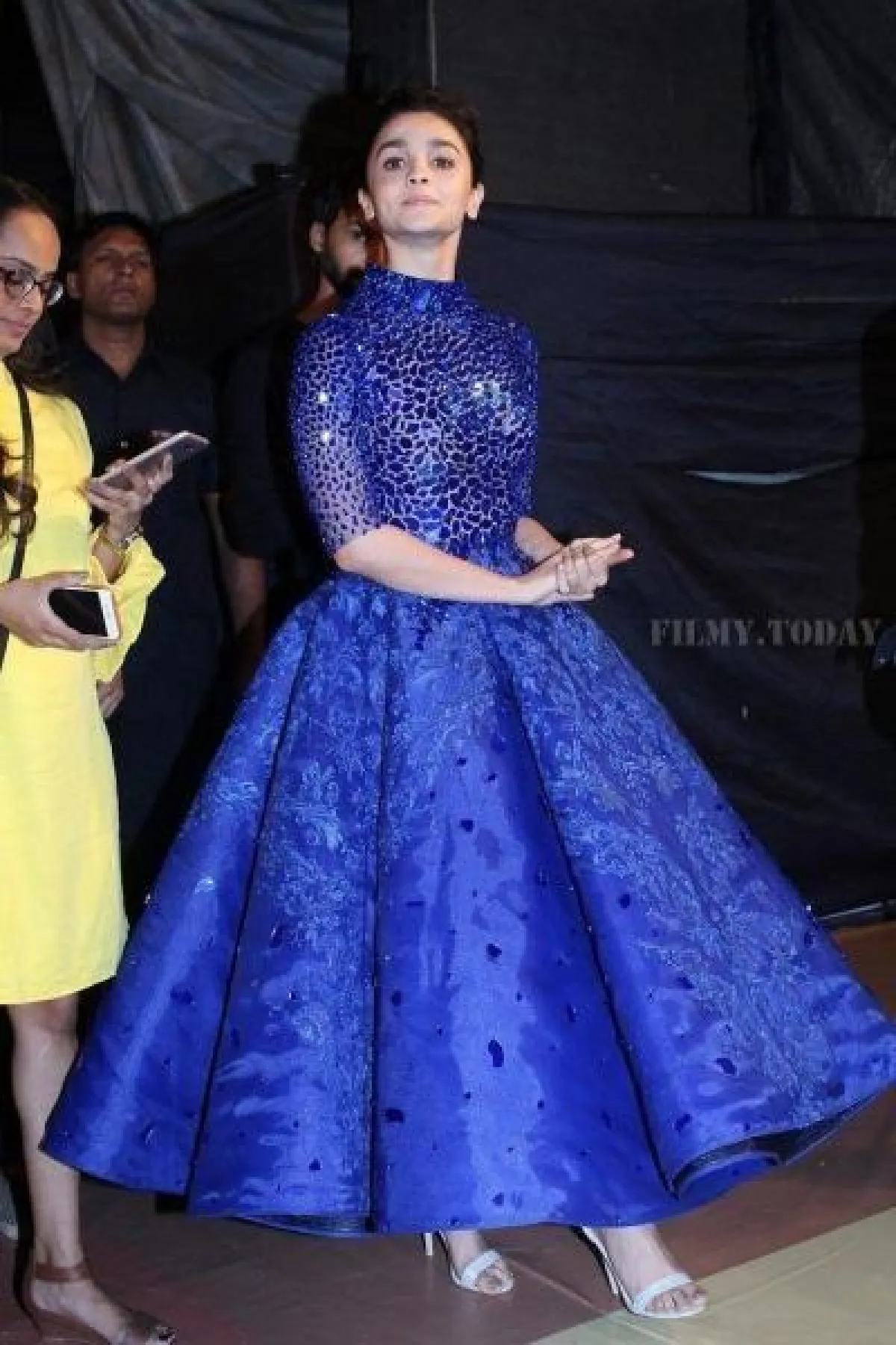 أحببنا فستان Alia Bhatt الأزرق المنفوش بتصميمه المحتشم والراقي، والمزين بلمسات برّاقة تزيد فخامته ليناسب ذوق المرأة العربية.