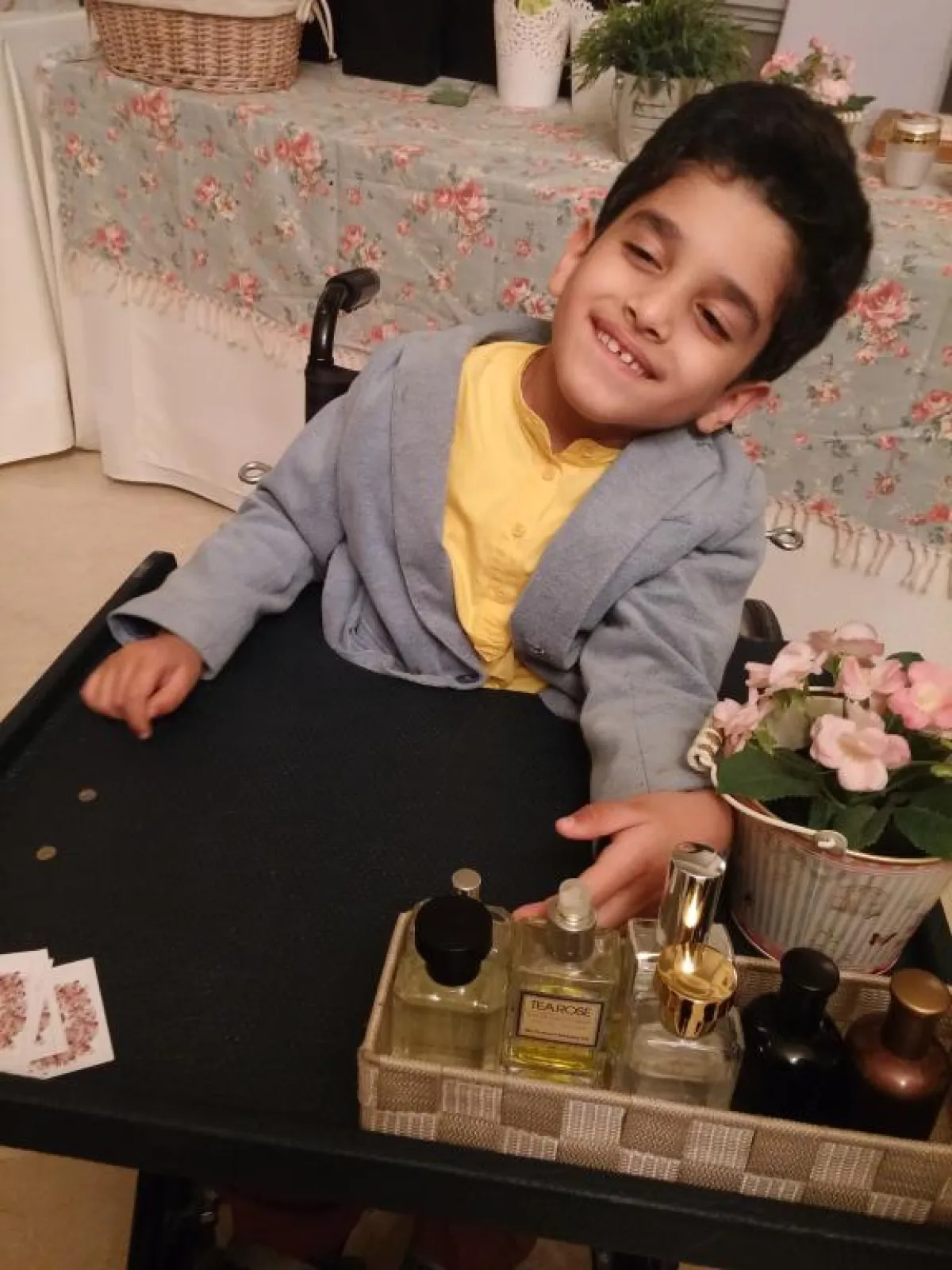 أما تفاصيل رحلة "فيصل" في عالم التجارة فتعود إلى 4 أعوام مضت، حيث لم يجعل إعاقته الحركية عقبة في طريقه ليمارس البيع والتسويق التجاري من خلال 6 عطور رئيسية على كرسيه المتحرك. وتحدث "فيصل" عن مشروعه قائلًا:" إن شاء الله يكبر مشروعي، وأقتني بيتًا صغيرًا باسمي، وأدر منه مصروفي الشهري بشكل جيد، خصوصًا أنني متقن لعملي جيدًا، وليس لدي وقت فراغ مثل بقية الأطفال، فأنا أحب أن أستثمر كل ساعة من وقتي بالتعلم والتدريبات واكتشاف كل شيء جديد من حولي".