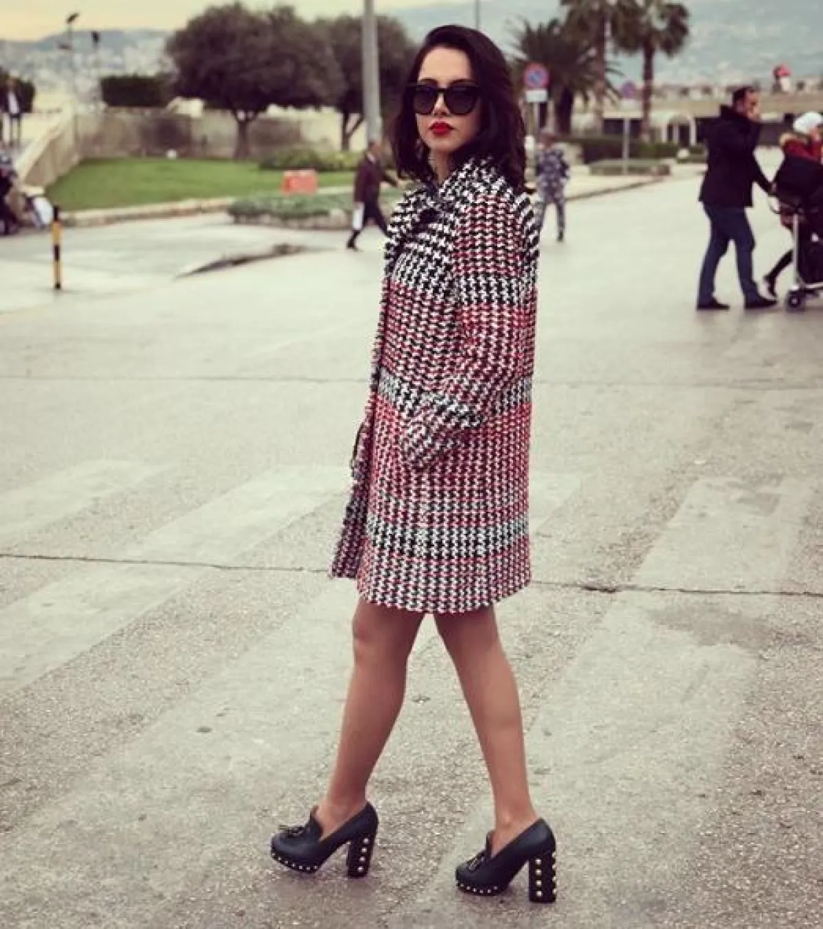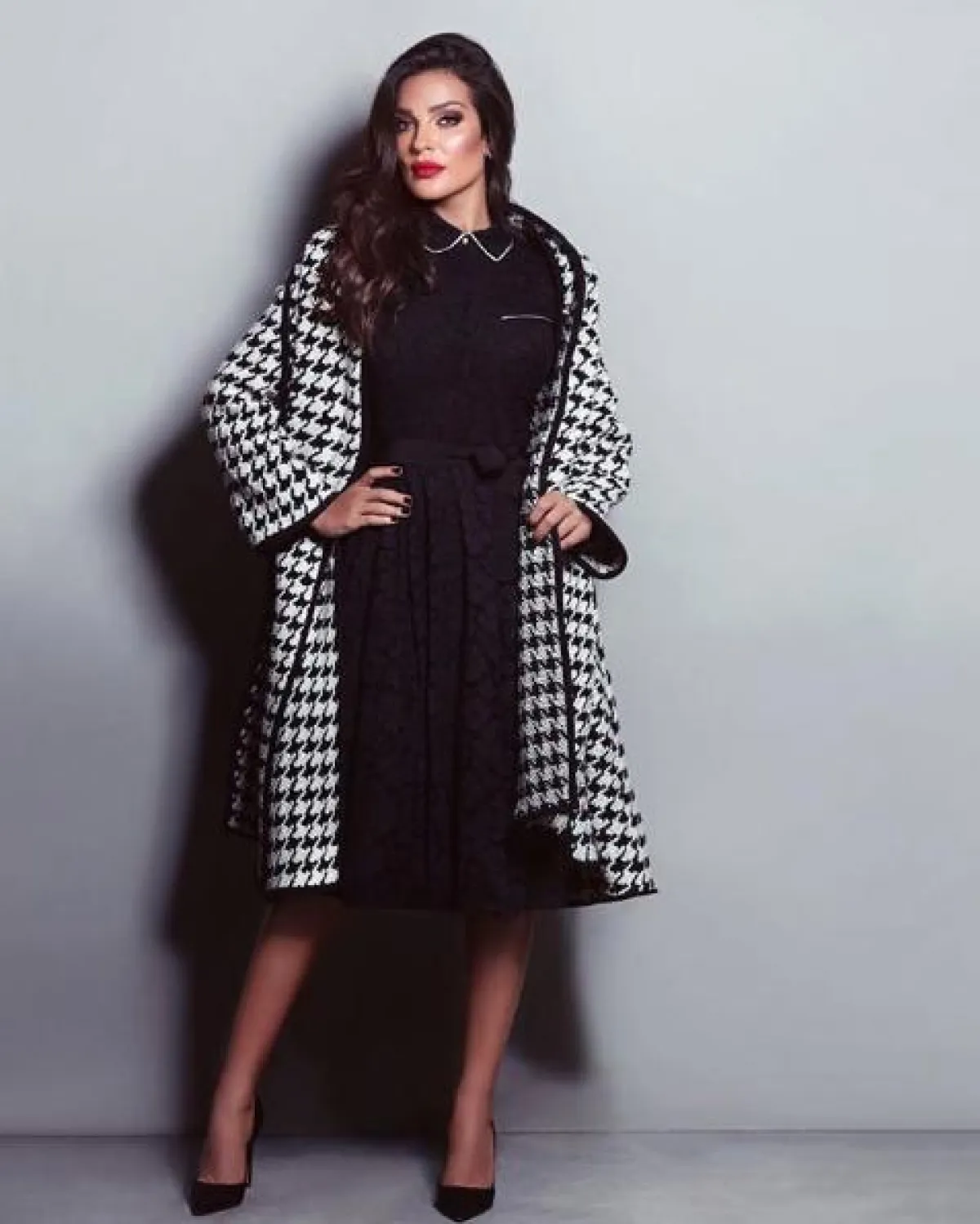 كارلا حداد في اطلالة مميزة في المعطف الكارو: