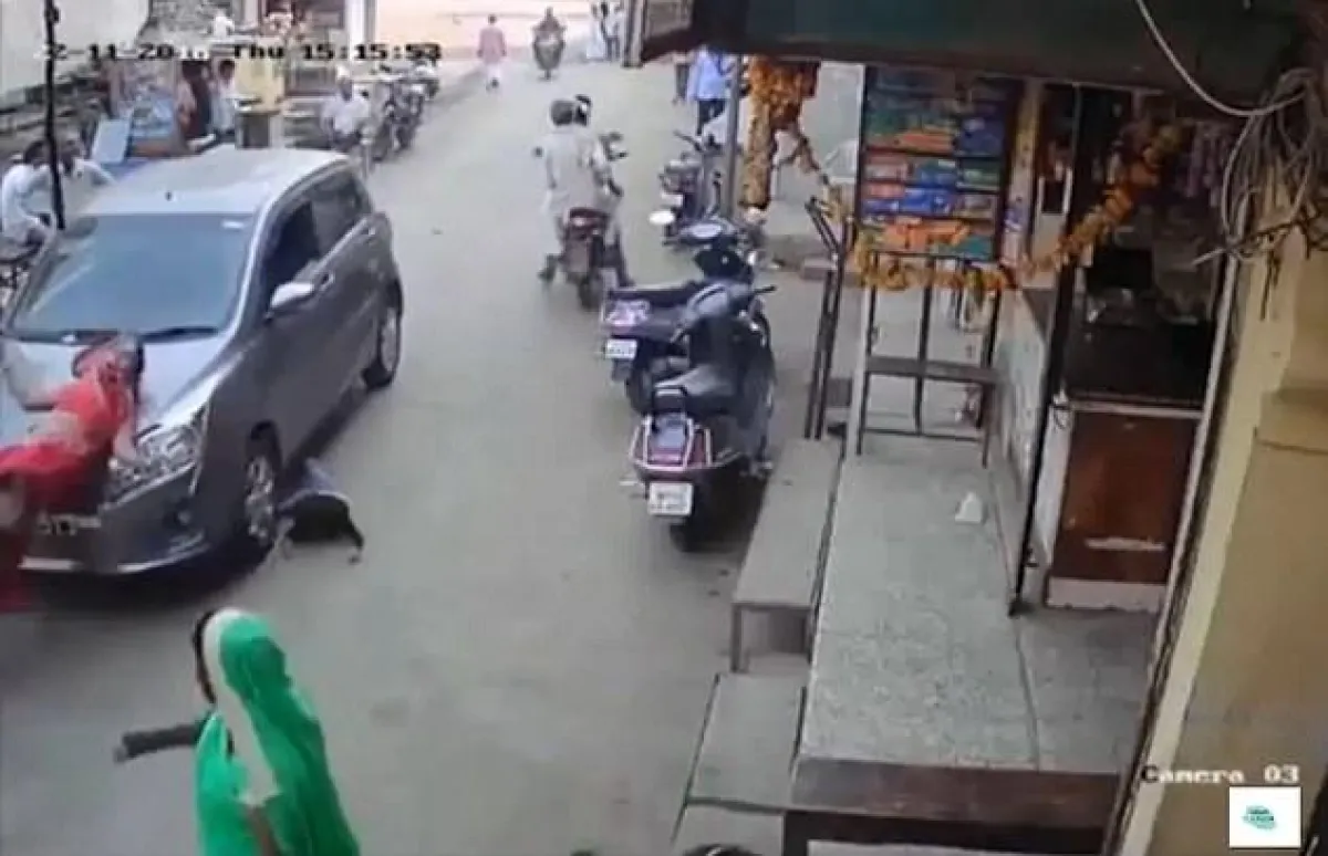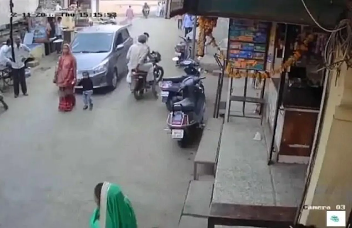 صحيفة «ديلي ميل» البريطانية عرضت فيديو سجلته كاميرات المراقبة، يُظهر لحظة الحادث في شارع ماديا براديش بالهند؛ حيث تظهر الأم وابنها غير مدركين لمجيء السيارة المسرعة من الخلف لتدهسهما بقوة، ولحسن الحظ؛ فقد نجت الأم وابنها.