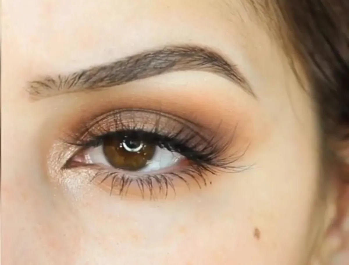 - على الجفن العلوي للعين طبقي ظلال باللون الباج فوق العين وعلى خط الرمش السفلي للعين.