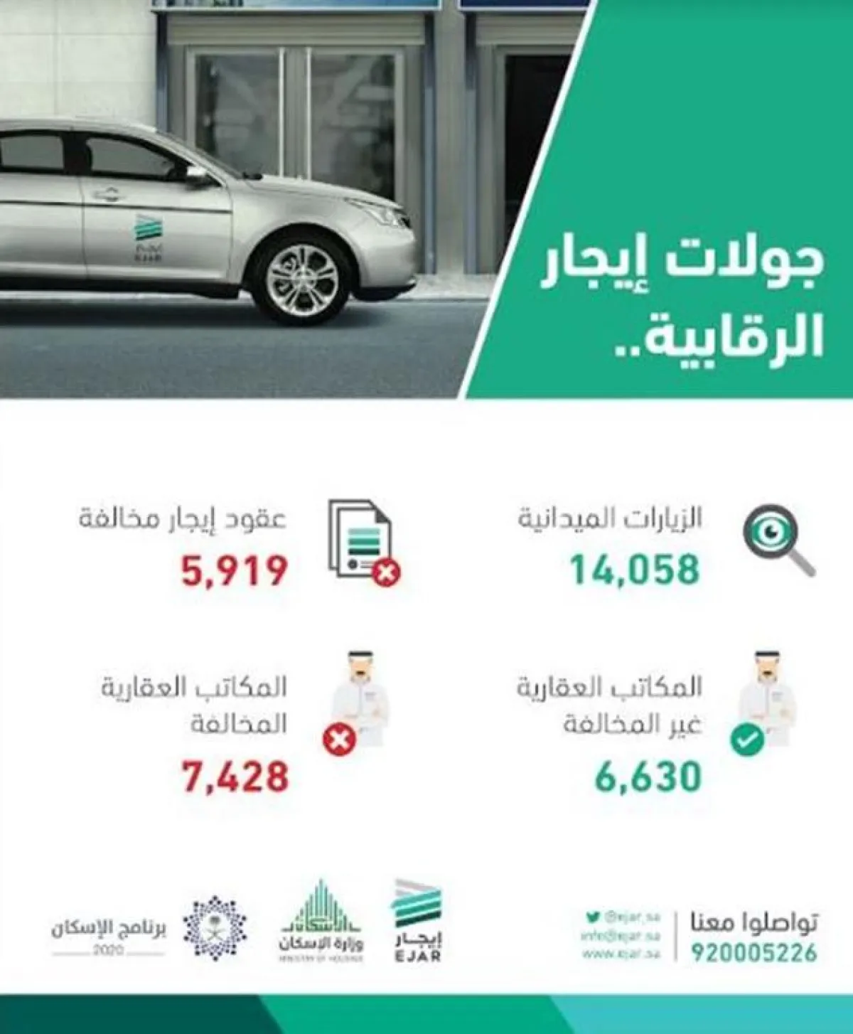 وتأتي هذه الجولات التفتيشية تعزيزاً للحملات الرقابية والتوعوية المستمرة لضمان خلو المنشآت من المخالفات، وإلزامها بالأنظمة واللوائح للحصول على الاعتماد في برنامج "إيجار" واستخدام الشبكة الإلكترونية في توثيق عقود الإيجار، حيث يسهم ذلك في تحقيق الحماية لأكثر من 9 آلاف وسيط عقاري معتمد وإبعاد للمتلاعبين من قطاع الوساطة العقارية، ما يضمن حماية حقوق جميع أطراف العملية الإيجارية ويلبي احتياجات المستفيدين من وجود قطاع إيجاري منظم ومستدام.